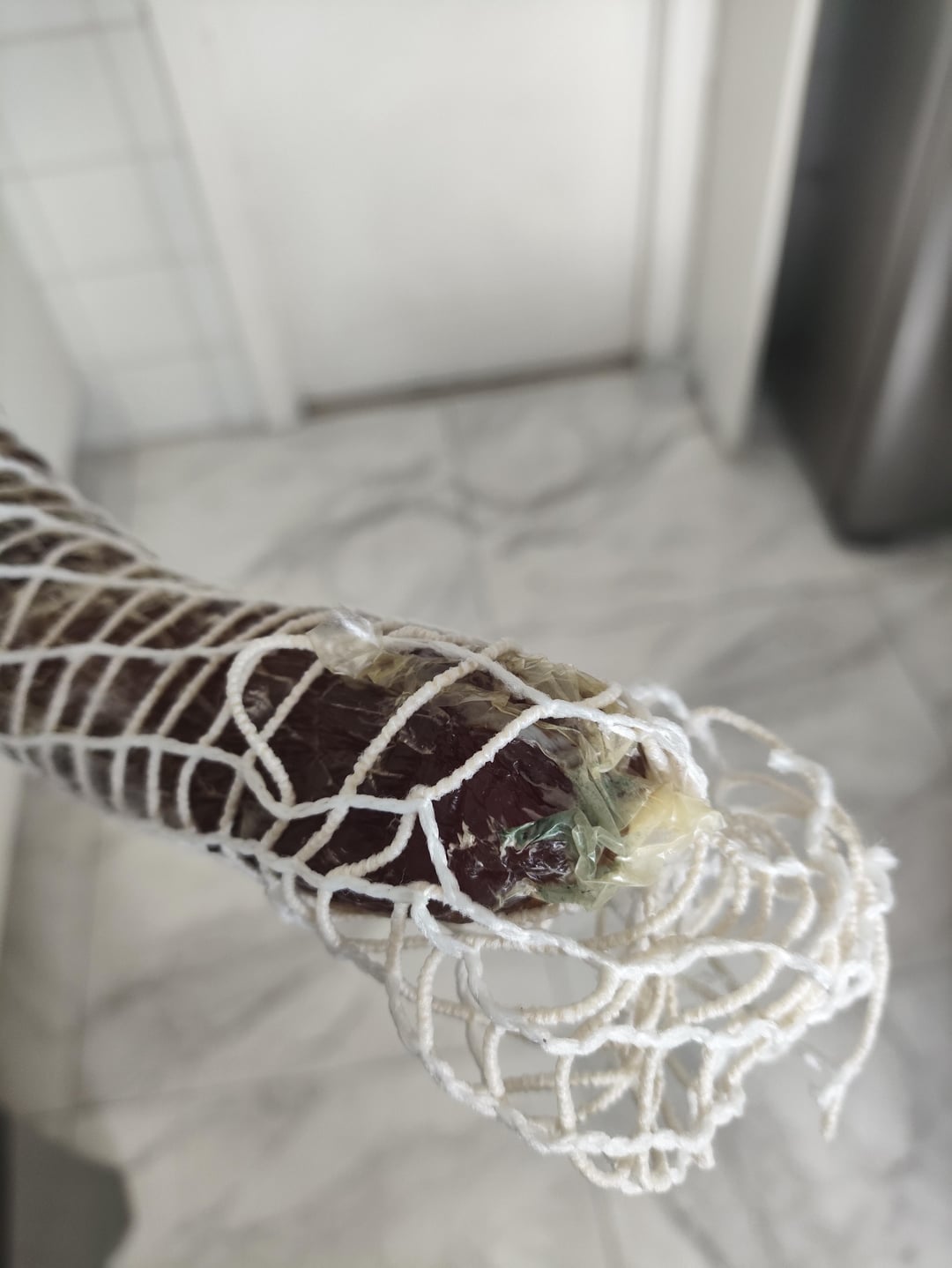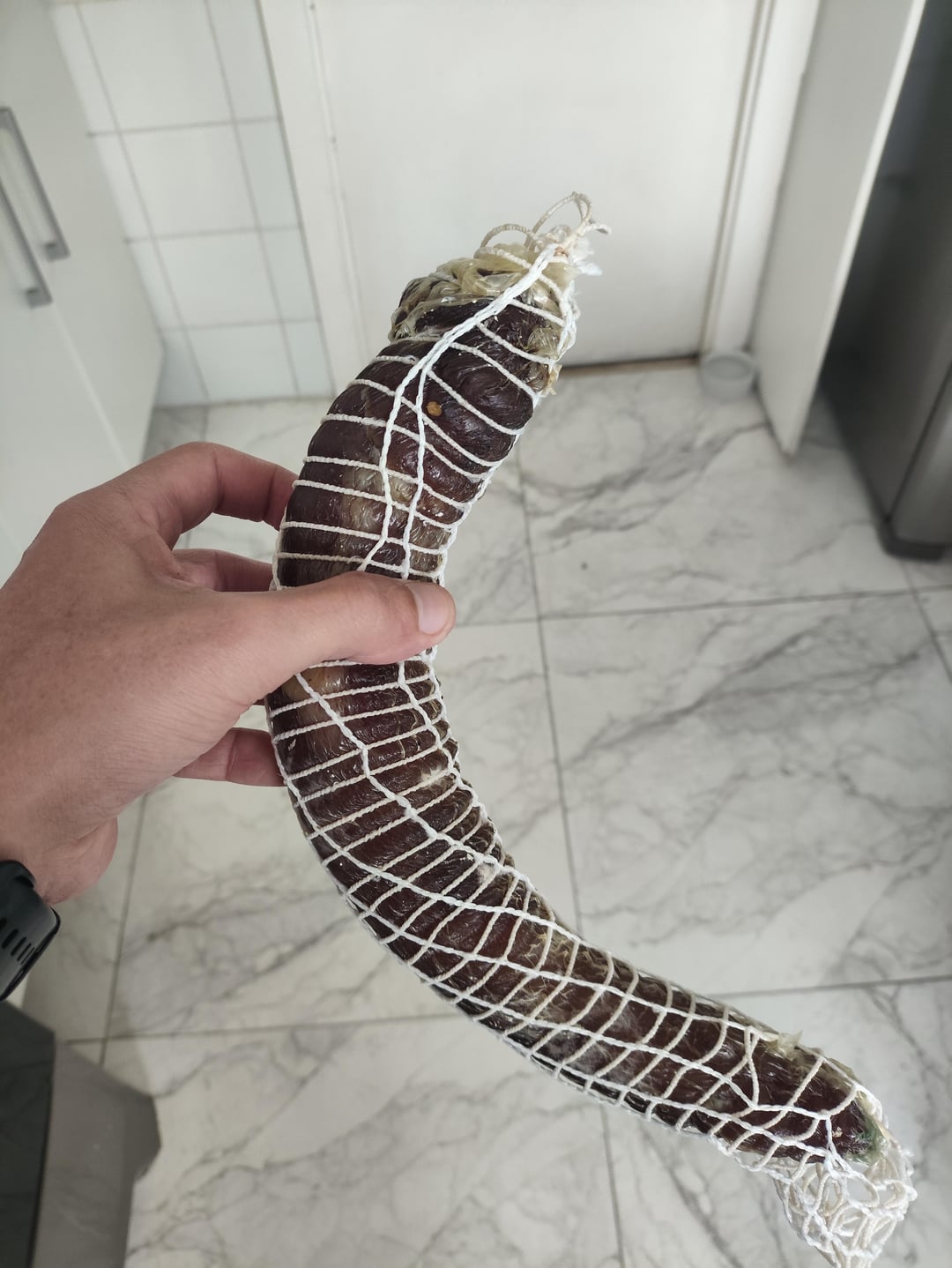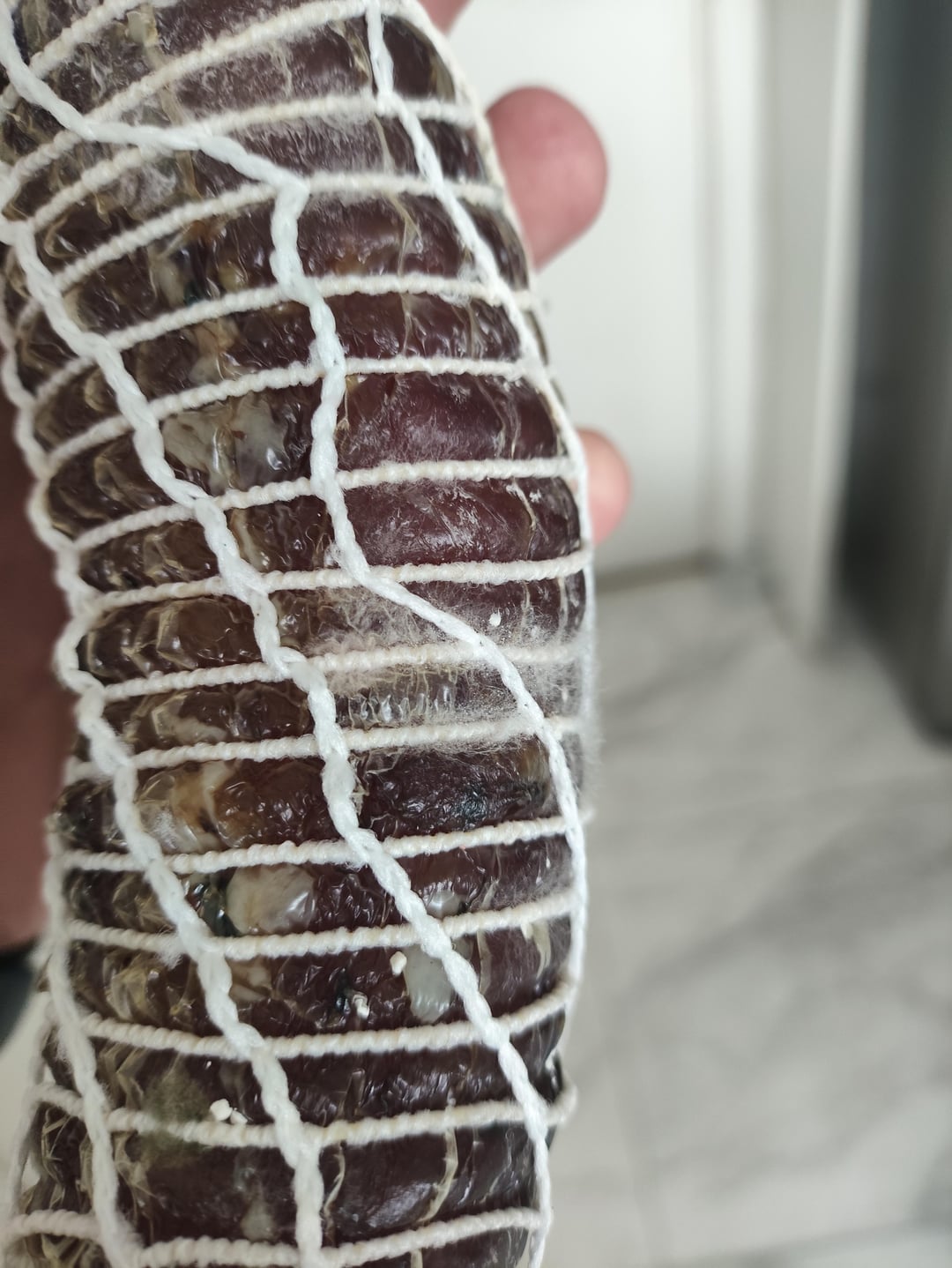 I recently attempted my first dry cure with a piece of pork tenderloin weighing around 850 grams. After roughly 20 days of curing and a weight loss of about 40%, I thought it was ready, so I took it out of the wine cellar where it had been hanging.