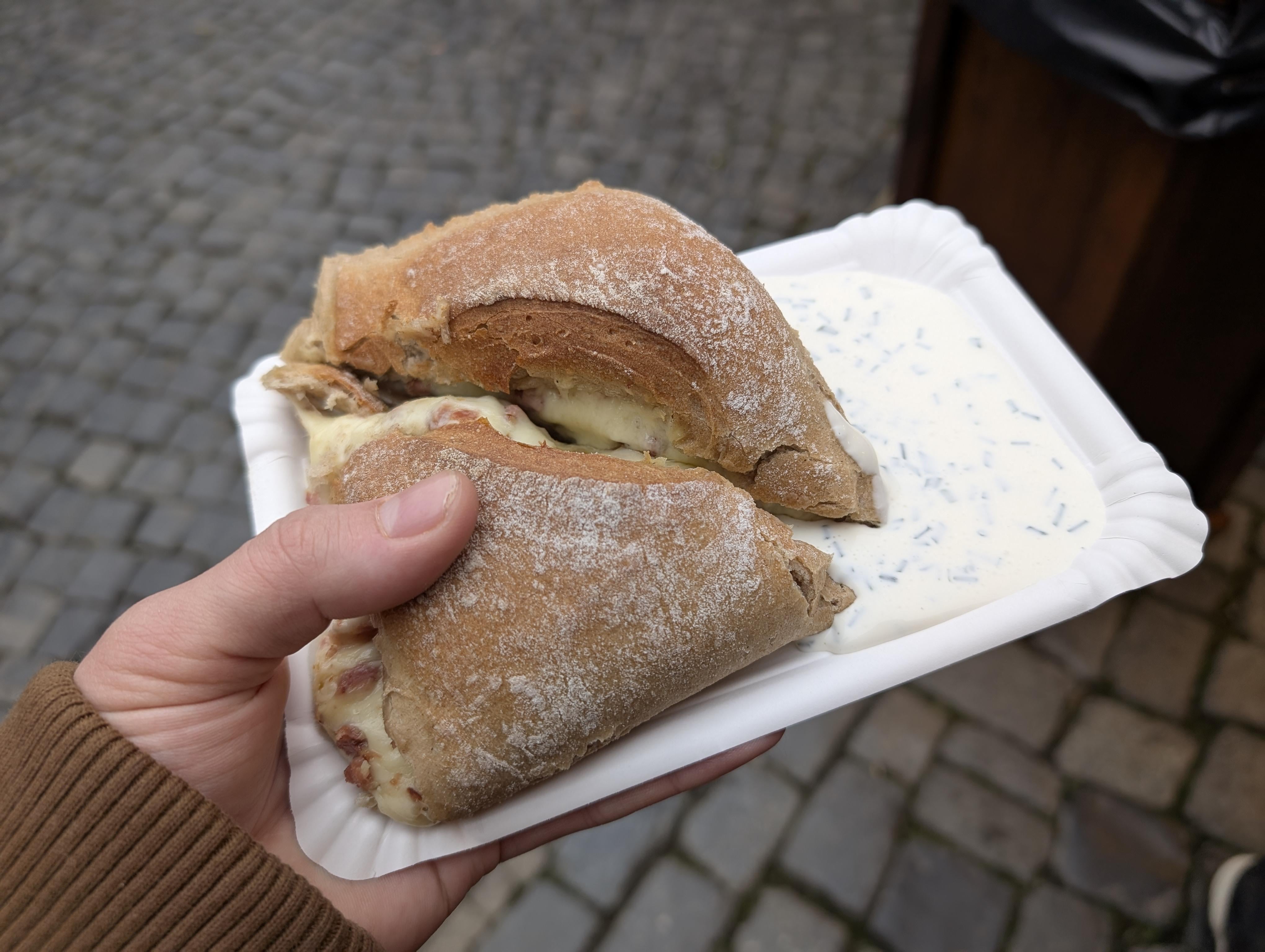 May not look too special but let me tell you this was one of the best things I've ever eaten. Beautifully warm bread with loads of cheese and ham plus the PERFECT Schmandsoße (sour cream sauce) by Kreati_ Food