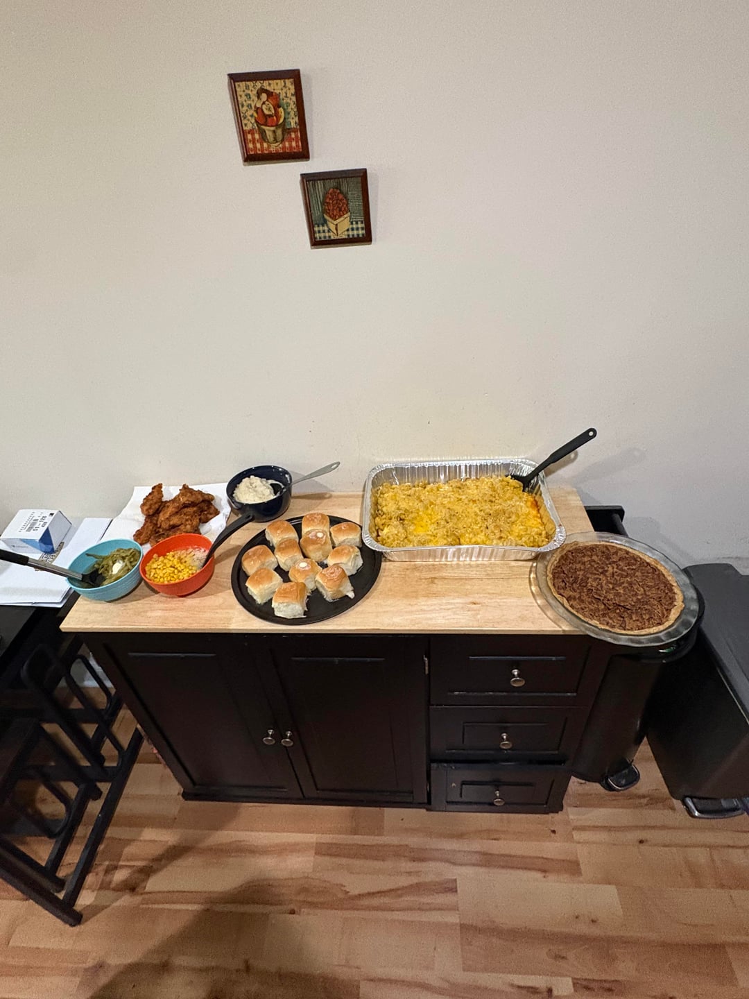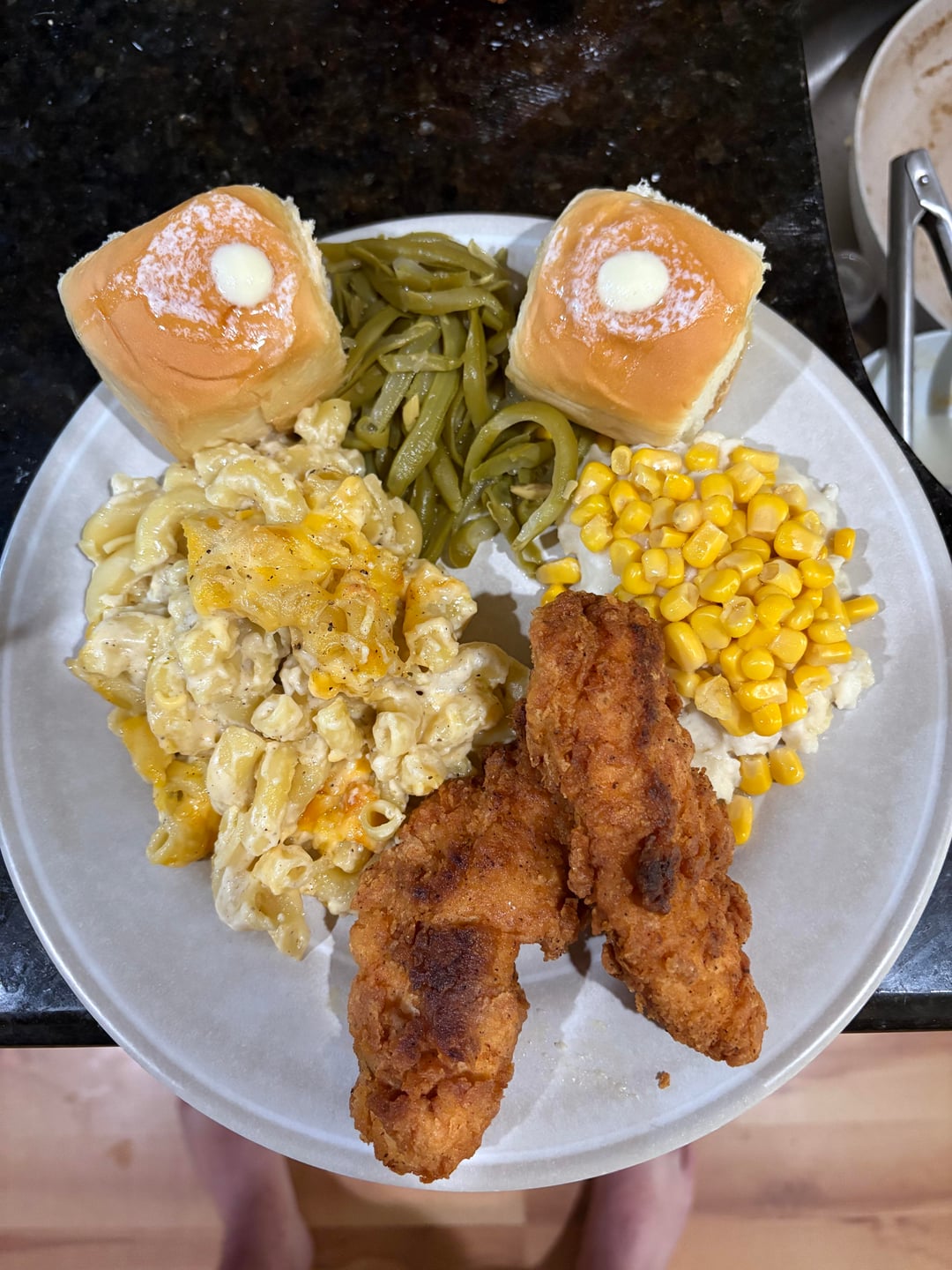 I moved from Tennessee to Philadelphia 4 years ago. Was unable to go home to be with family this year, so decided to cook the entire meal for my roommate and I. Used my late granny’s pan fried chicken recipe, did baked Mac with only smoked cheeses, and the rest was simple, but I’m proud of myself.