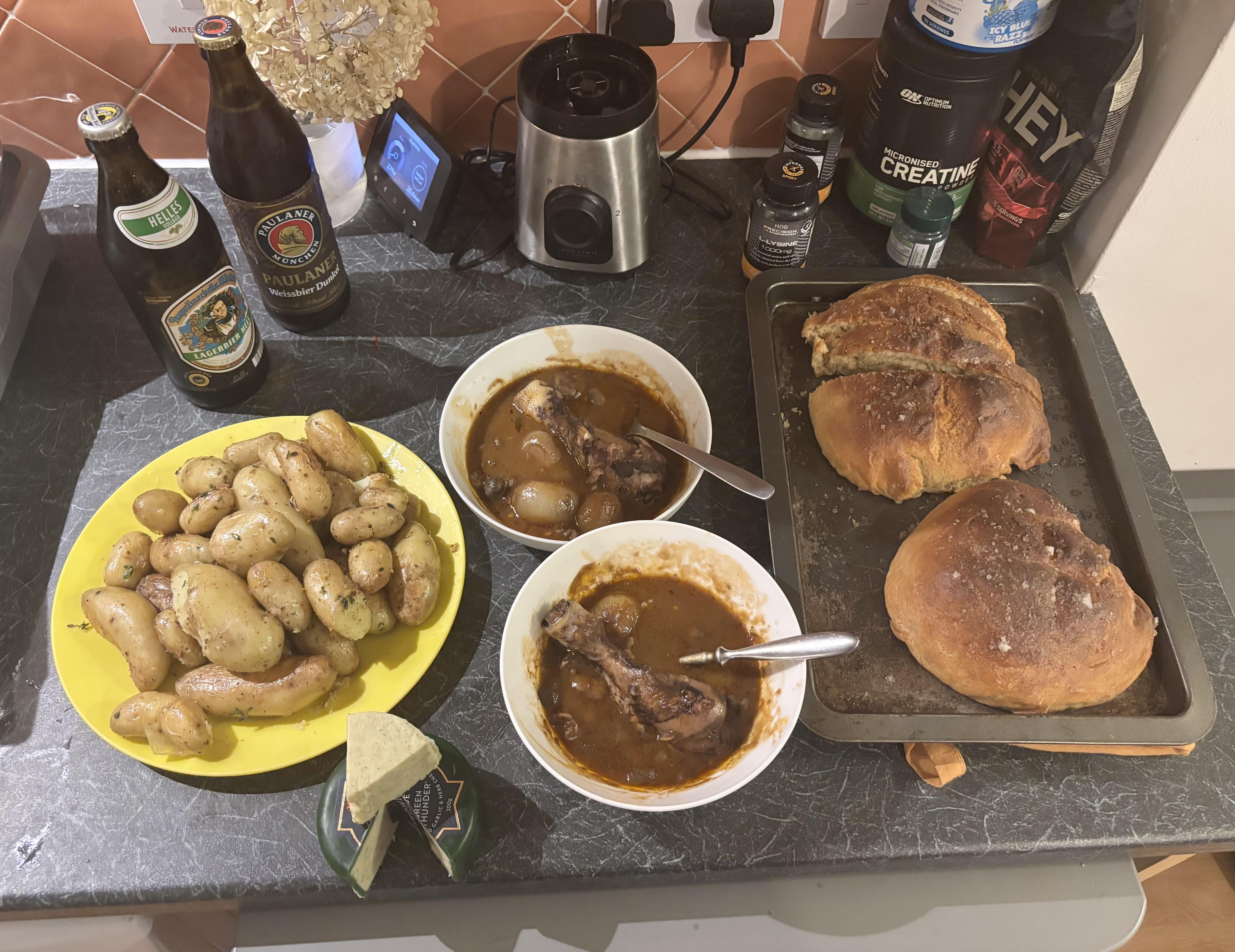 Wife and I weren’t able to spend thanksgiving with the family, so I made some coq au vin with potatoes and pretzel bread by Significant-Main3216 Dinner Tonight Tonight's Dinner