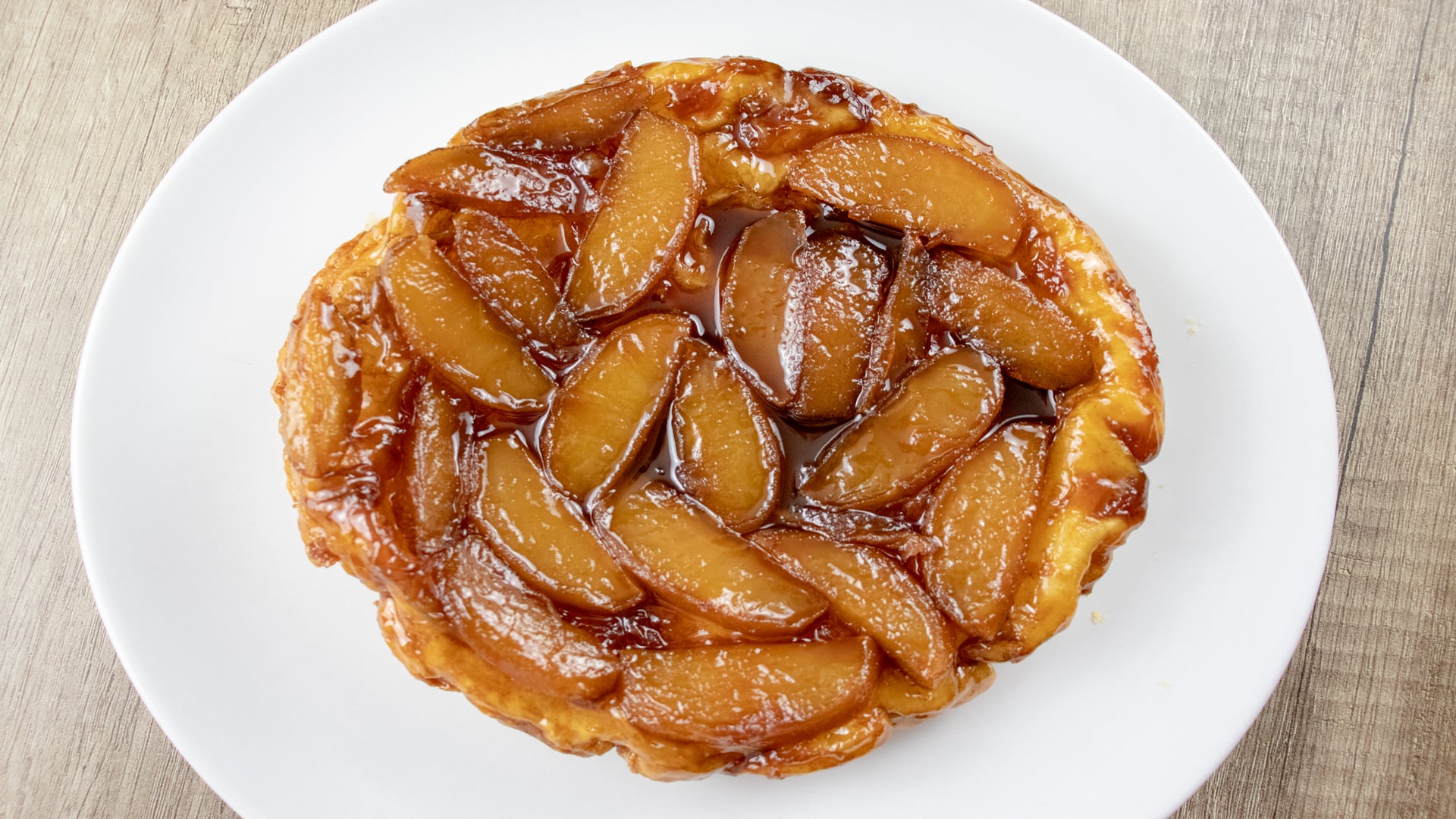 Peel and cut the apples.. In a pan make a caramel with the sugar and the water once the caramel is golden brown add in the butter. Next add the apples in the pan and let them cook for 10-15 mins. cover with puff pastry and bake in the oven at 180 c 356 F for 35- 40 mins