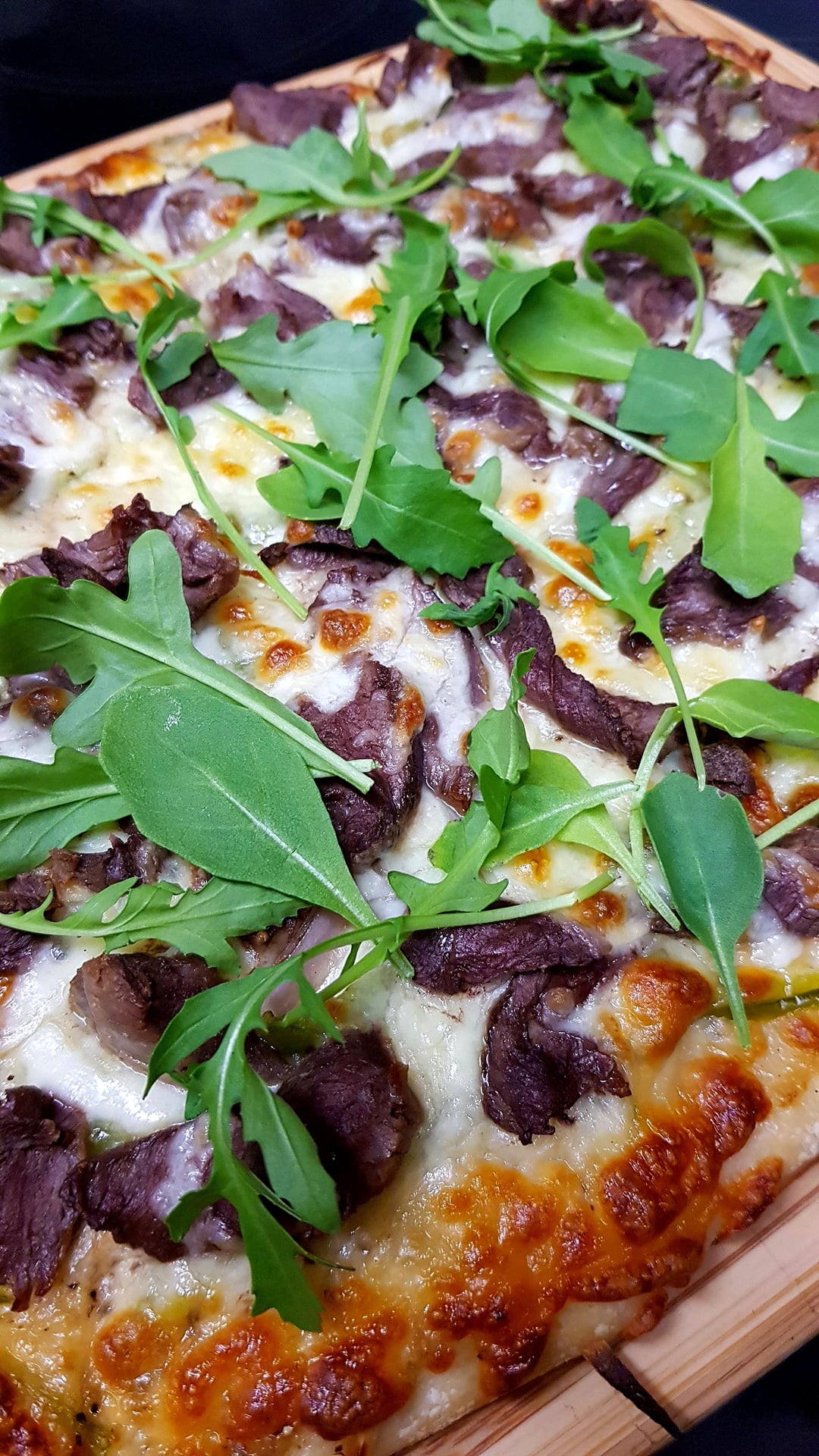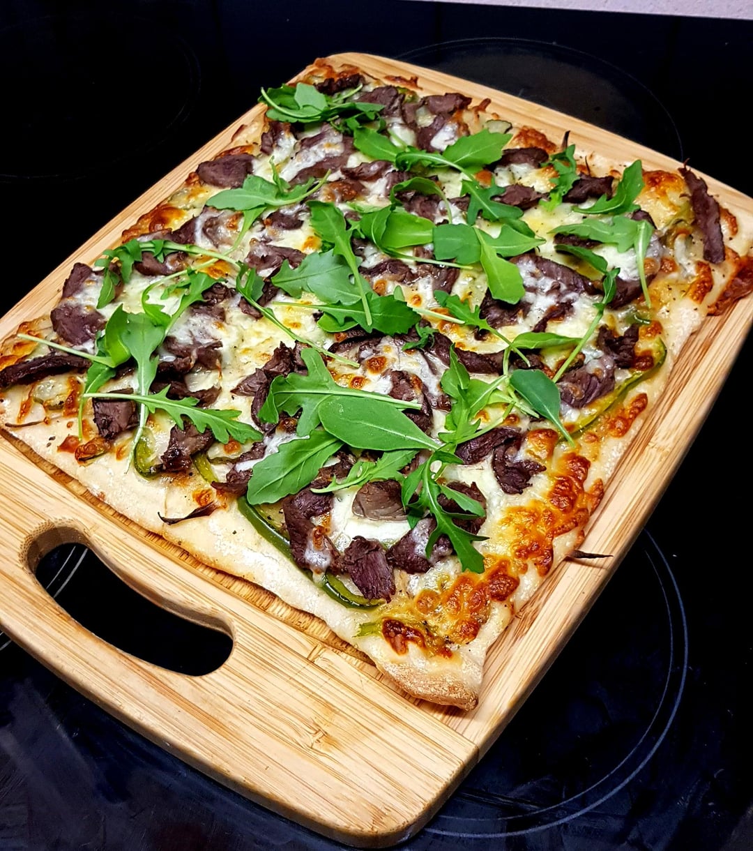 ‘Philly Cheese Steak’ Pizza. White Sauce Base, Finely Sliced Steak, Pickles, Green Peppers, Onions and Mozzarella. Finished with Rocket. by pink_flamingo2003 Dinner Tonight Tonight's Dinner