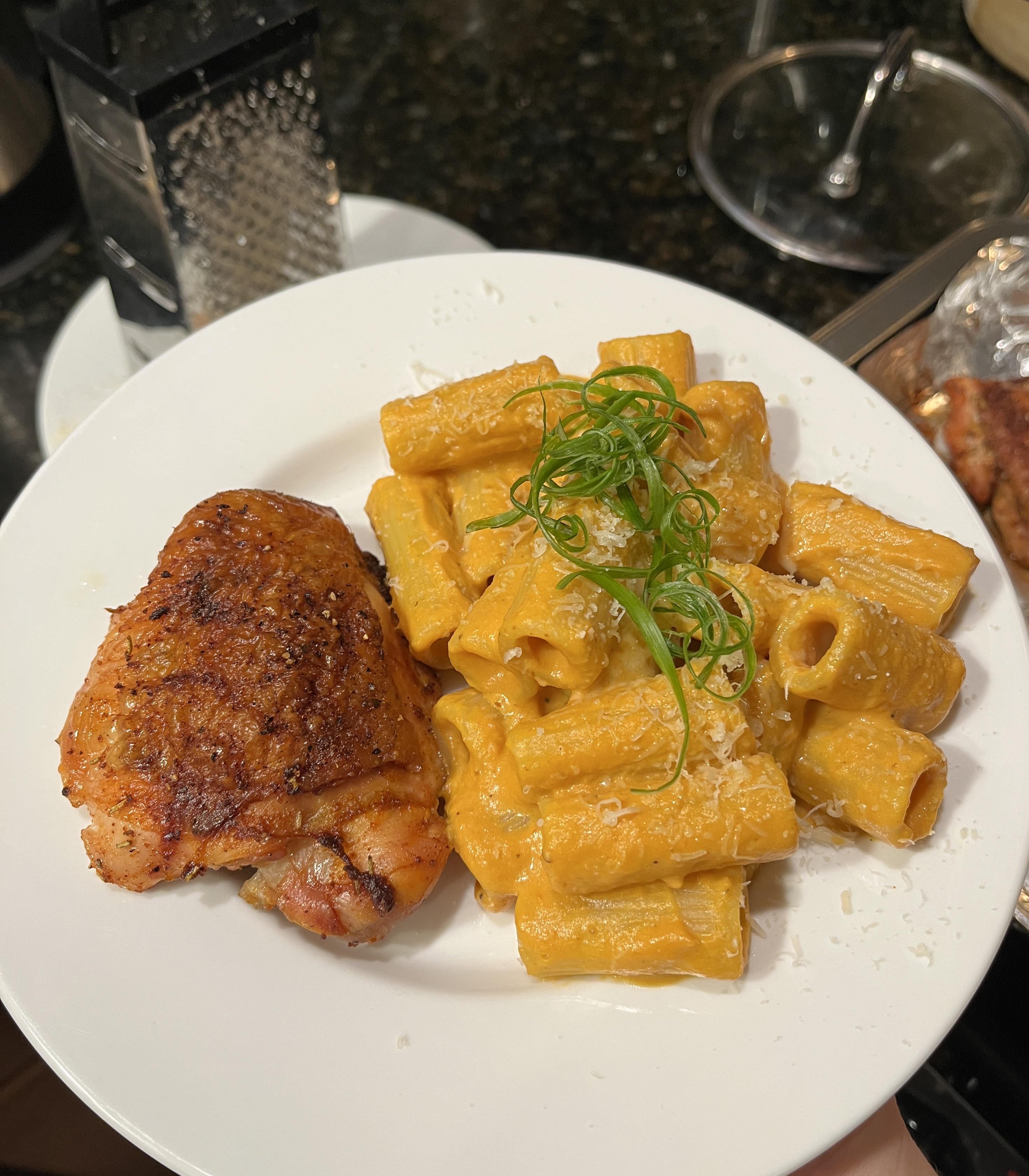gardenunit on November 29, 2025 12:17 am Made pumpkin-miso pasta with the leftover purée from my pumpkin cheesecake. Officially a Libby’s free household until next year.