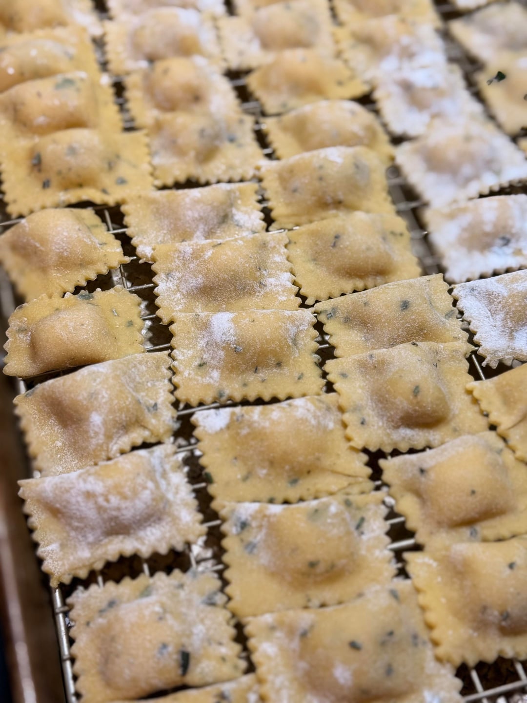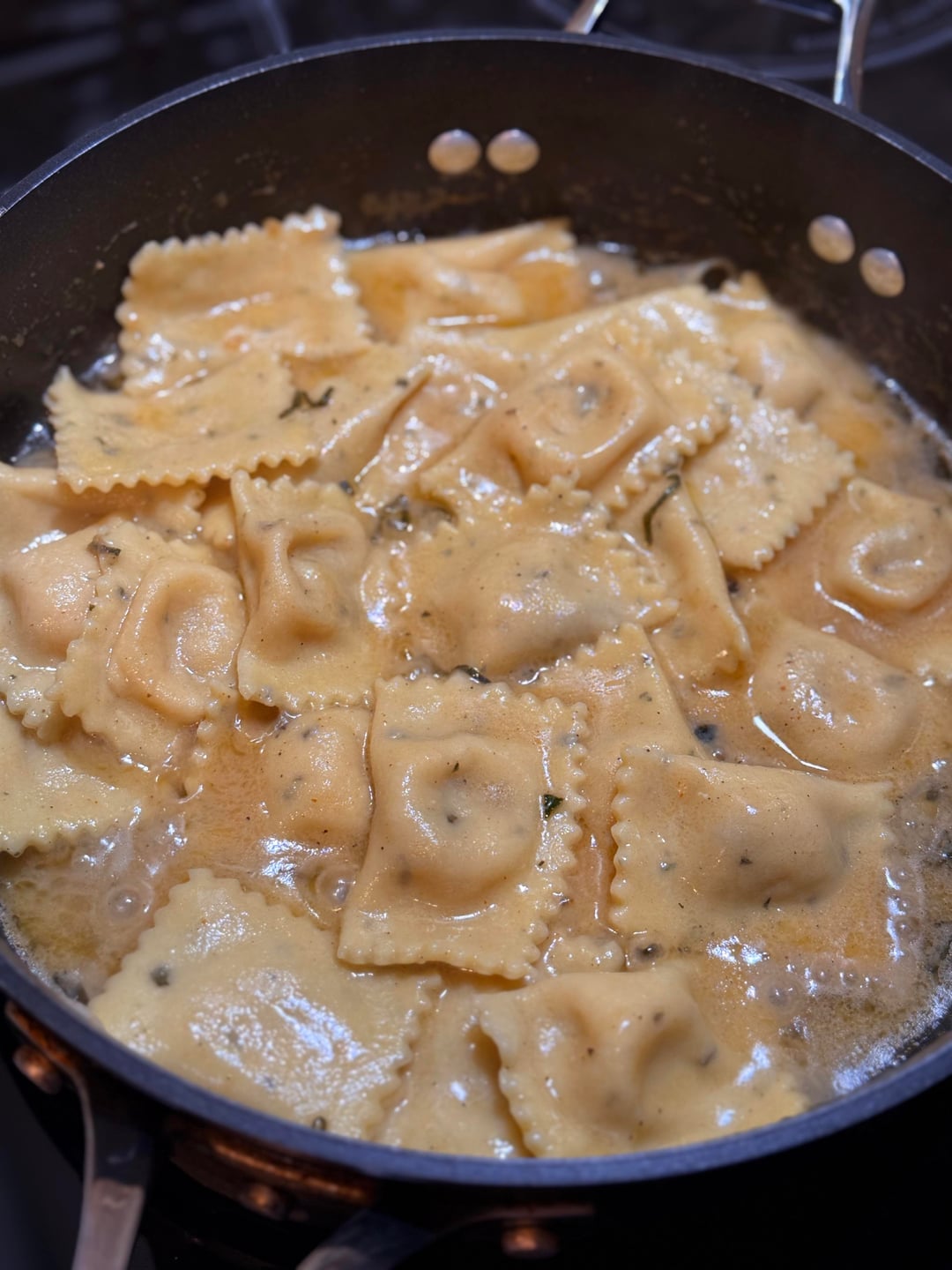 [homemade] Leftover cheesy potato filled ravioli in a sage and lemon turkey gravy sauce