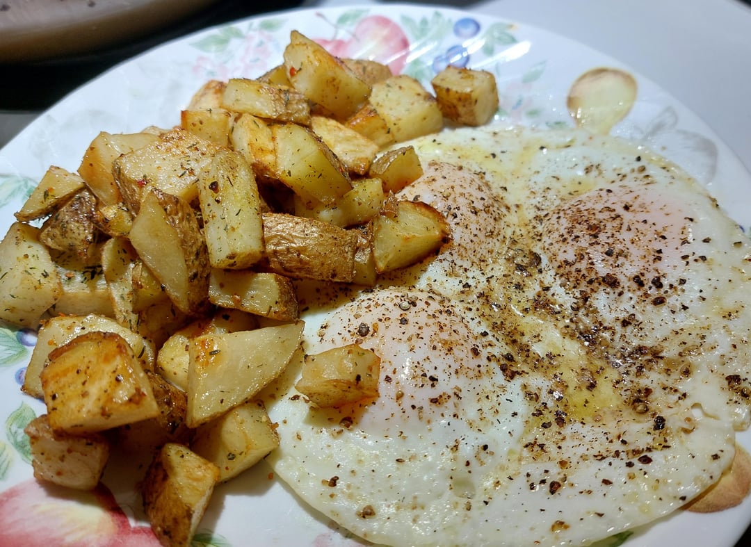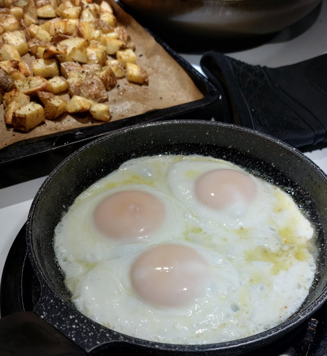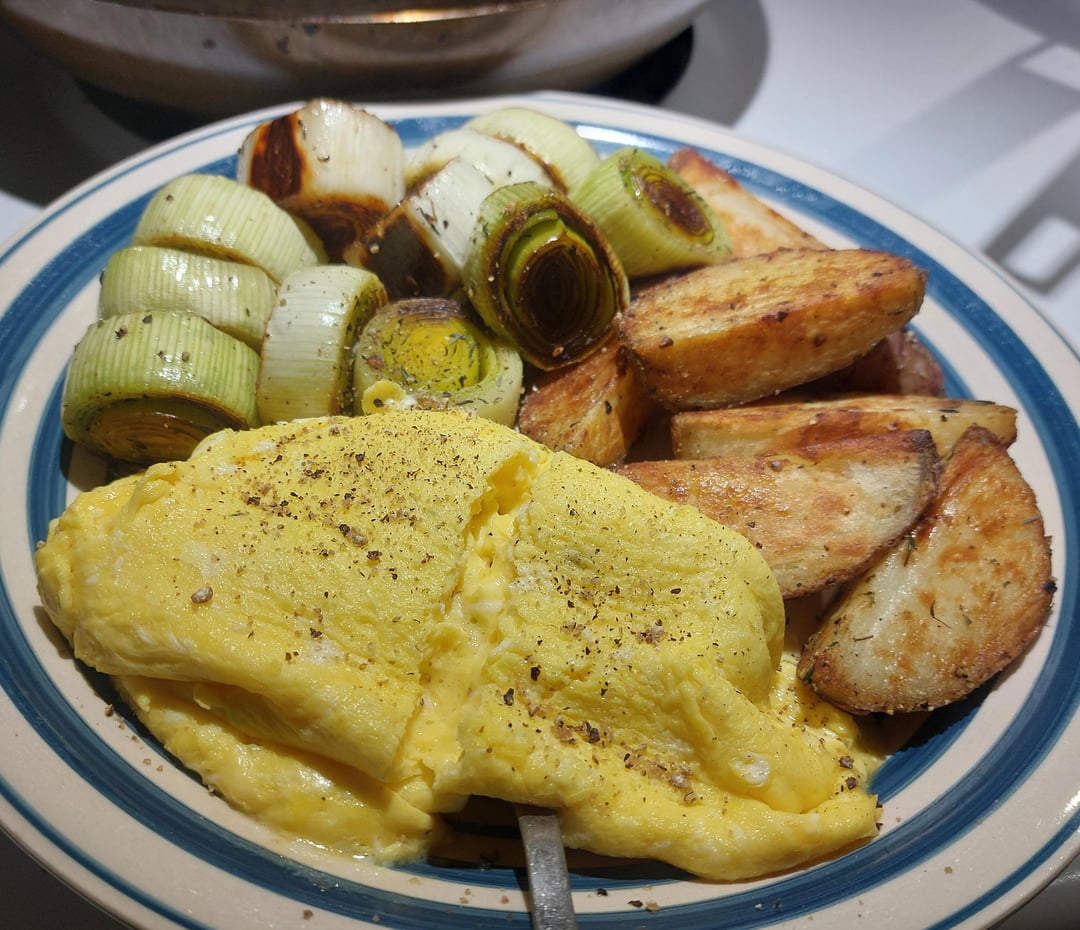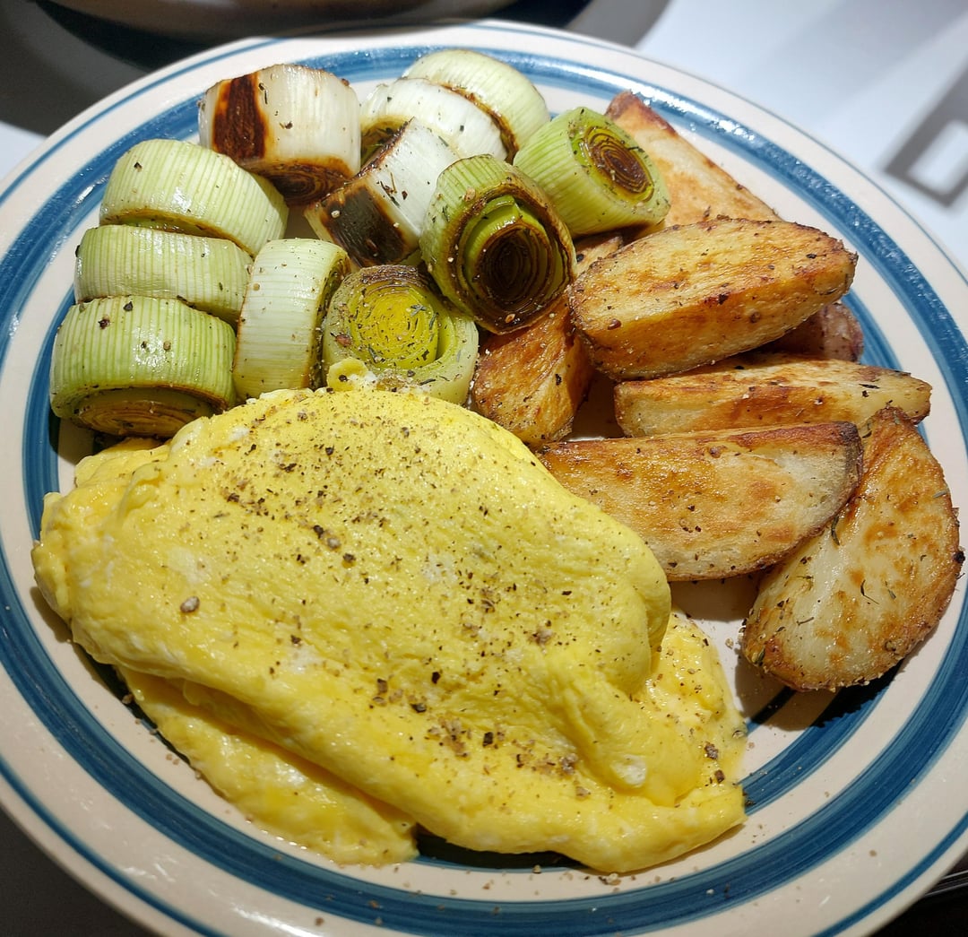 [homemade] two days of nice breakfast – eggs two ways, roasted potatoes, bonus leeks by crimsontape Food