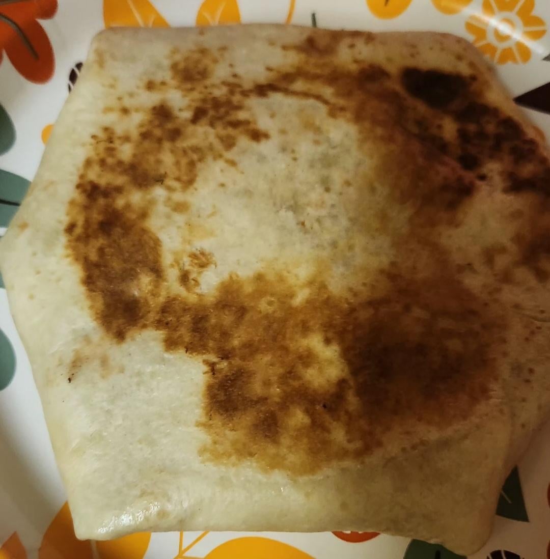 Take a tortilla and cut it in half and roll it into a cone and fill it with taco meat, Velveeta (or cheese sauce of choice), Rotel, diced onion, and shredded cheese then seal it closed with a paste made from flour and water and fry them. So good and they’re surprisingly filling.