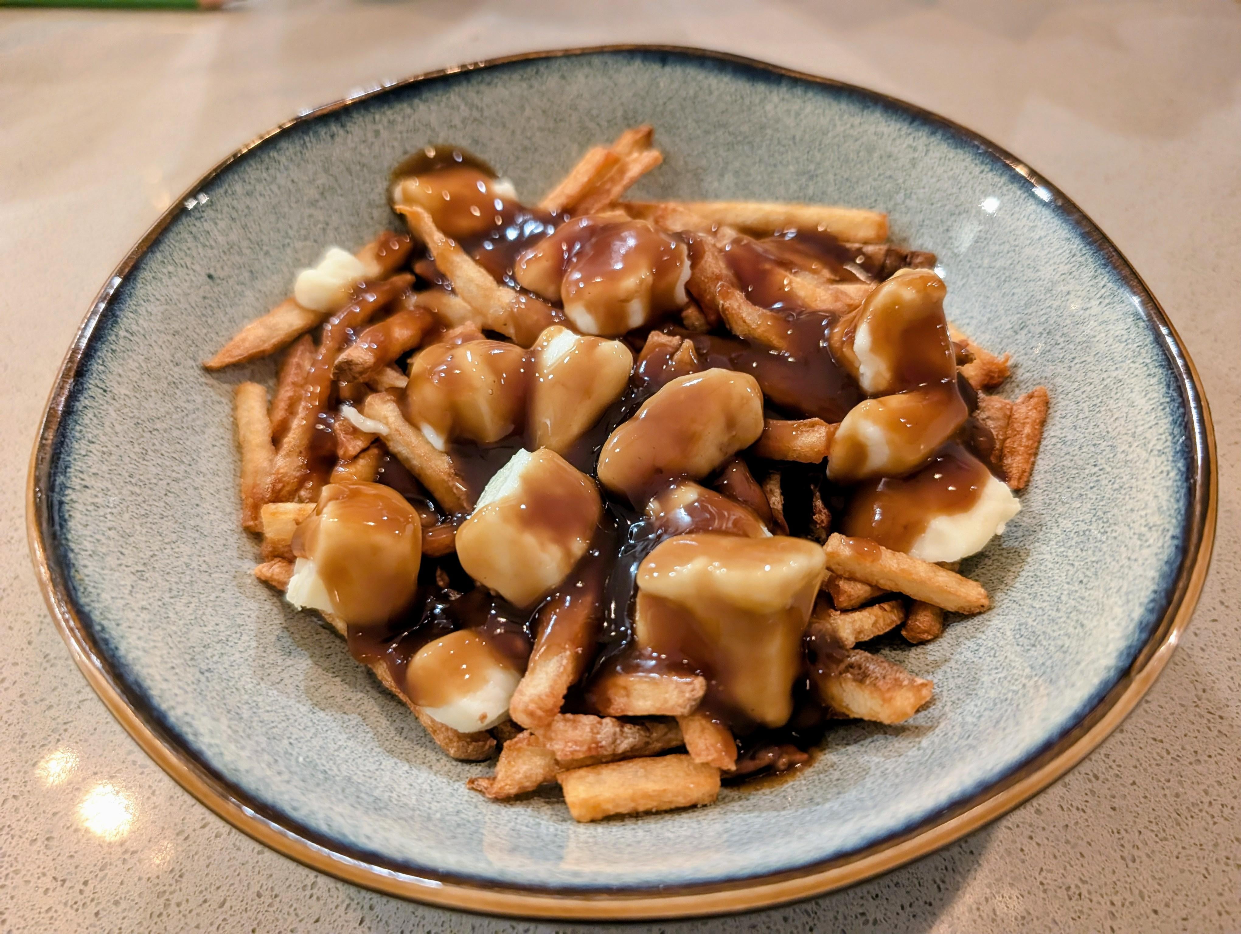 Homemade fries, cooked in beef tallow, Beechers cheese curds with brown gravy