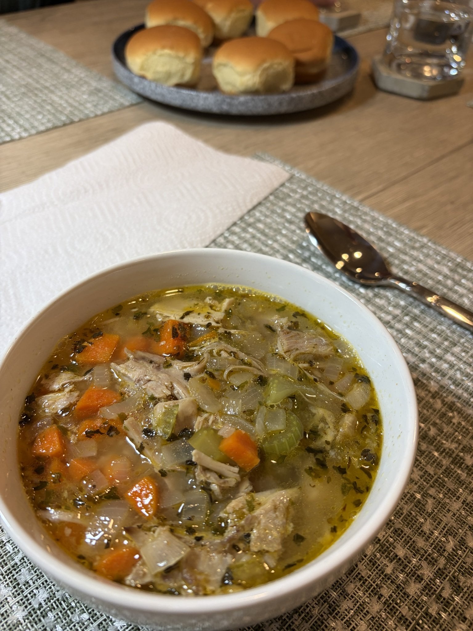 Really enjoyed this soup tonight so I thought I would share. Was feeling burnt out on Turkey/Dressing/Fixins etc but still had so much leftover turkey and wanted something else I could do with it. I skipped the pasta and did cooked rice instead. 1/3-1/2 cup of cooked white rice with soup spooned over the top was perfect. Really hit the spot now that it’s started getting chilly outside.