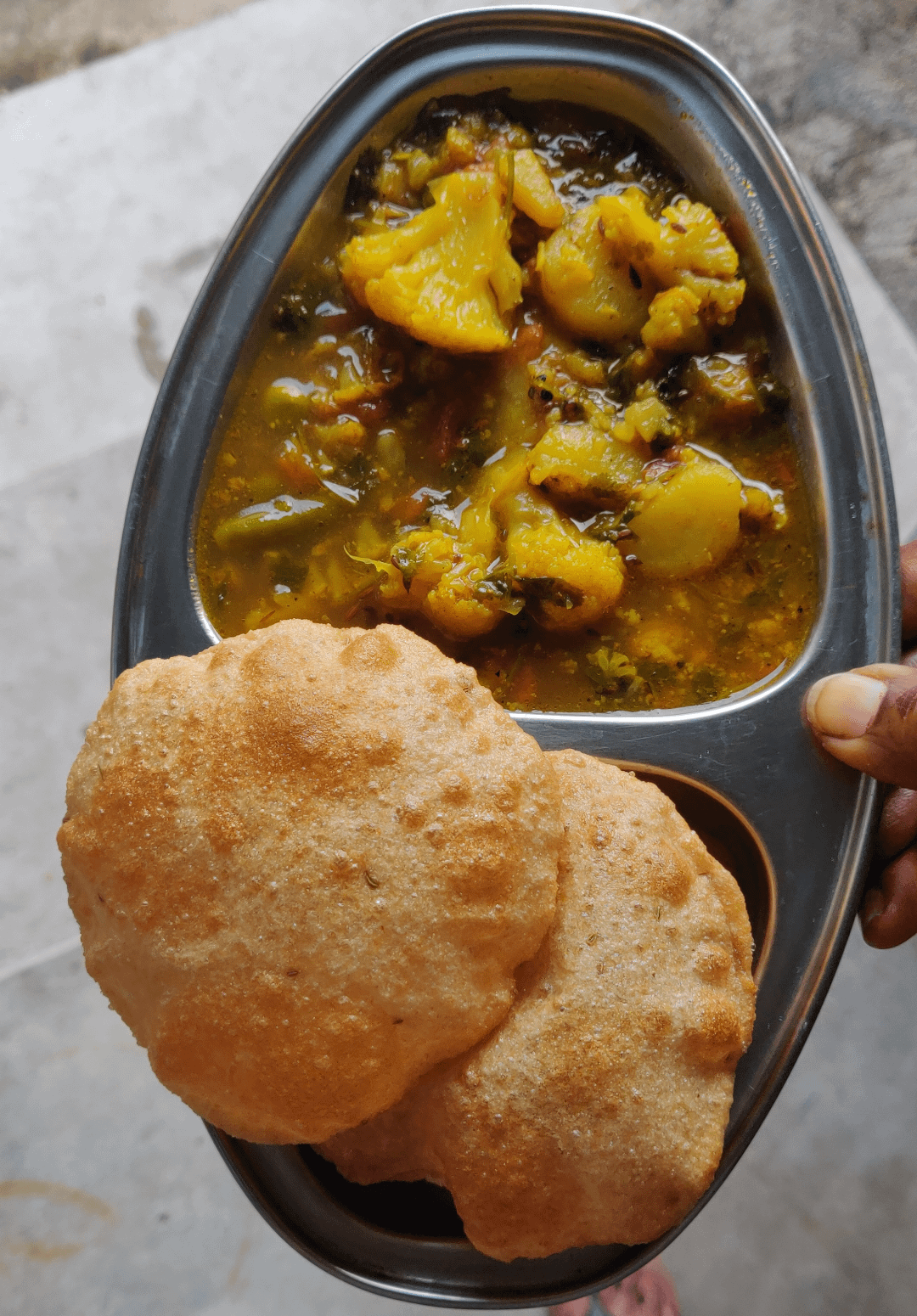 Crispy golden pooris paired with a flavourful, home-style aloo gobi curry.