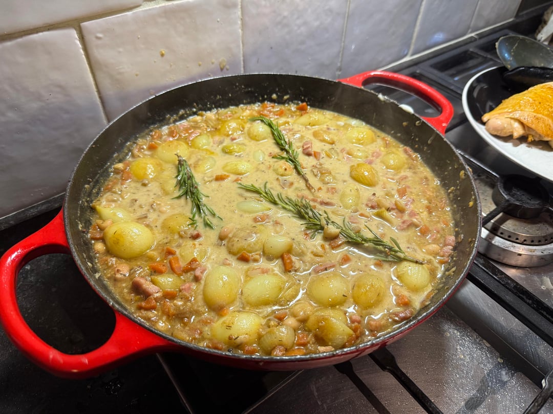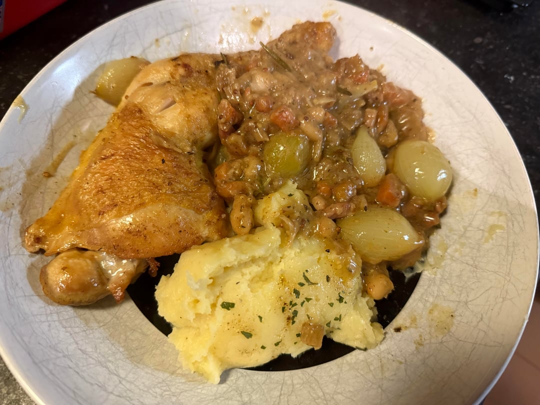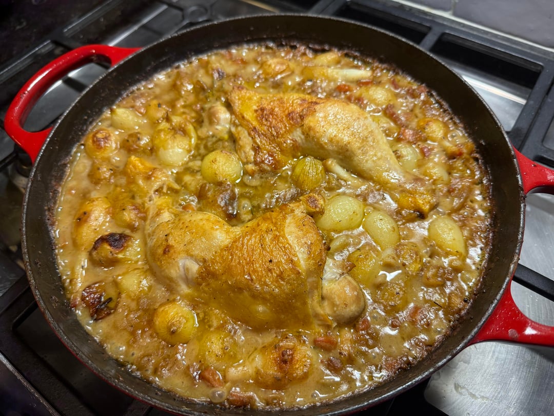 Coq au vin blanc/chicken with white wine sauce