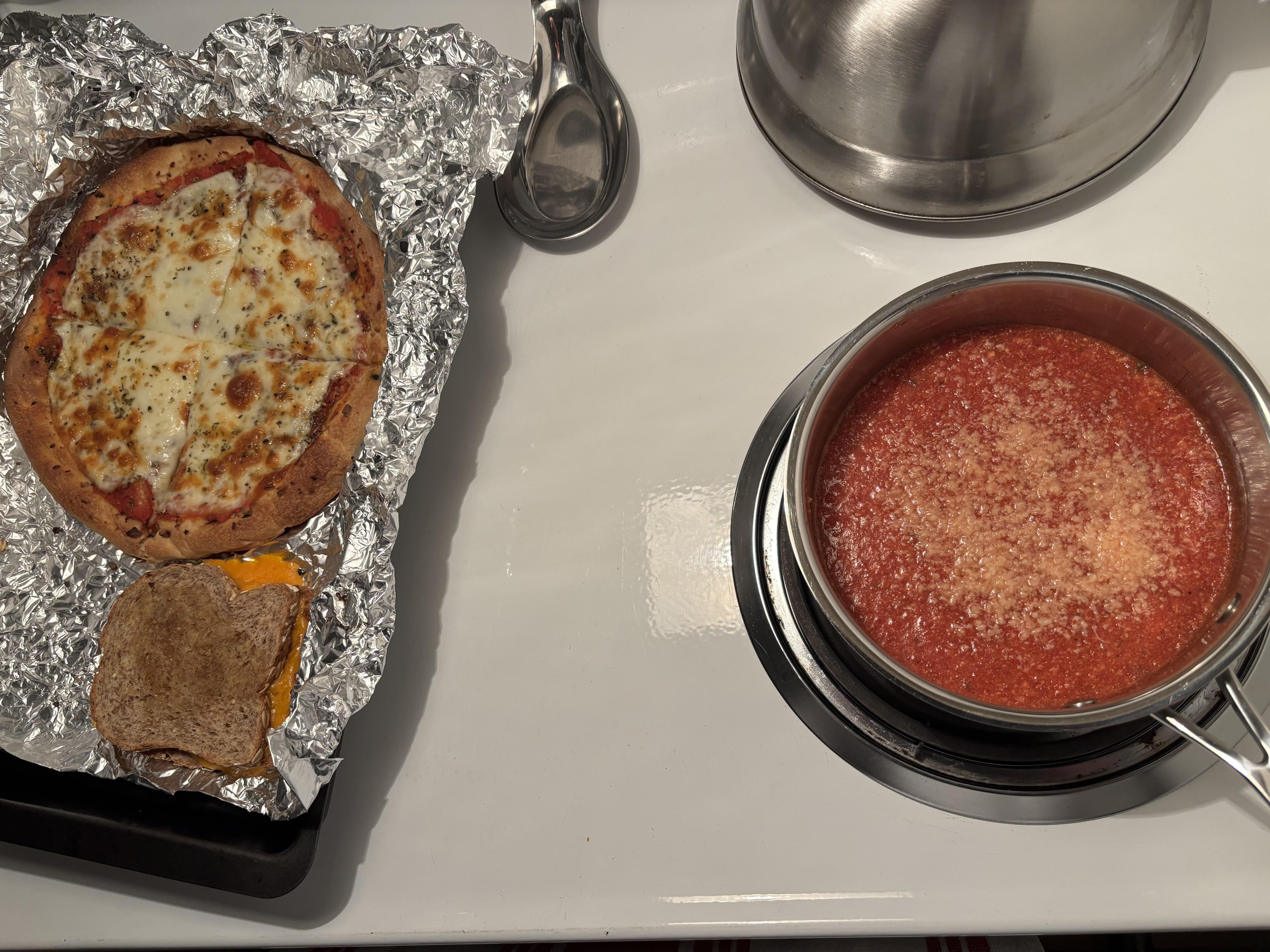 Leftover garlic naan, quick homemade pizza sauce, mozz = pizza + tomato soup and grilled cheese by fitsomah Dinner Tonight Tonight's Dinner