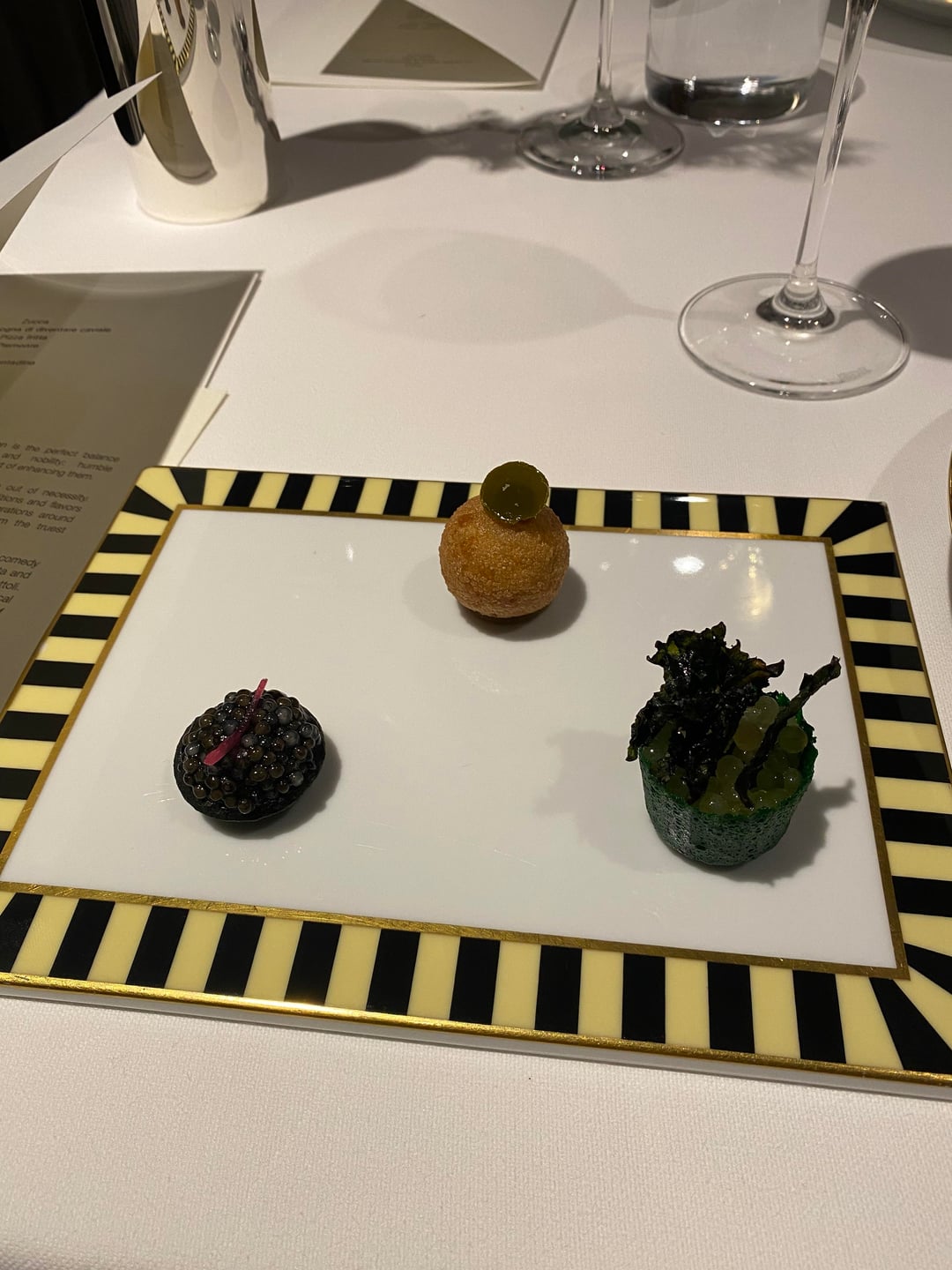 The service was precise, as expected from a three-star place. However, I found the service to be more robotic and not as warm as other places of the same level. The somm who was working our table was a bit strange in the beginning. For example, when we asked him to recommend a nice bottle of red wine for the meal based on what we discussed, he pointed to the cheapest bottle on the list of a different style to what we were looking for. When we asked for a nicer bottle since it was a special occasion and spoke to him more about how we were interested in learning more about Italian wines, he seemed to open up a lot more and warmed up. Just felt a bit of judgment in the beginning. The best part of the service, however, was Massimo himself. He came by to say hi at the end and was so warm and welcoming, a true showman. We spoke about everything, from our meals we had in Bologna to his love of Ferrari.