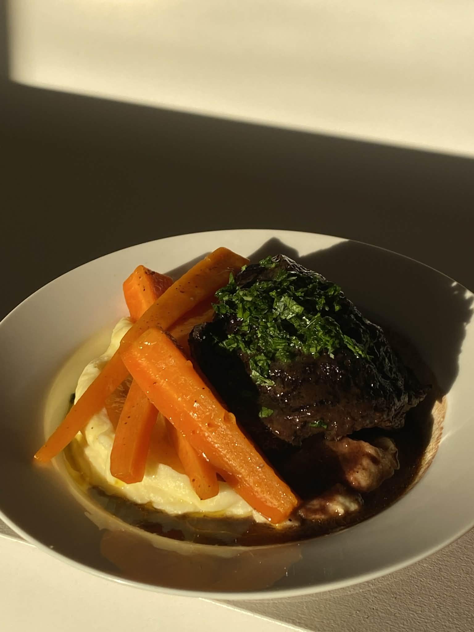 For this one, I loosely followed The Queen of Australian Home Cooking, Nagi from RecipeTin Eats recipe for beef cheeks w/ red wine sauce, but substituted onion for leek (green parts only) and garlic for garlic oil (just in place of the olive oil).