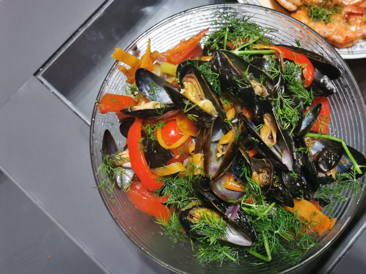 Then melt some butter with garlic and add pepper , cherry tomato add same spices like mussels and add mussels to the mix stir for a minute