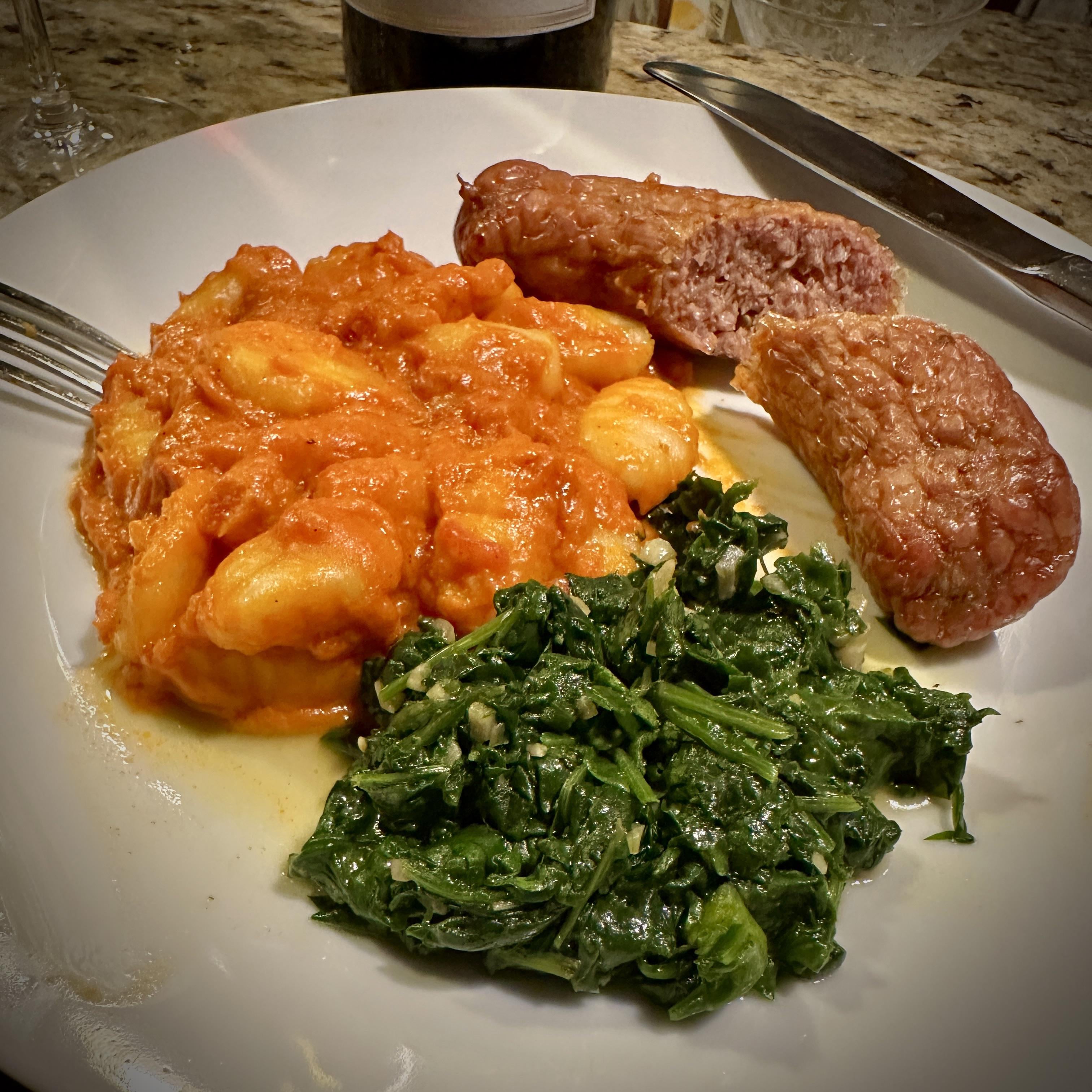 Gnocchi in a creamy Marscapone Marinara, with Italian sausage, and spinach sautéed in olive oil and garlic. by theNOLAgay Dinner Tonight Tonight's Dinner