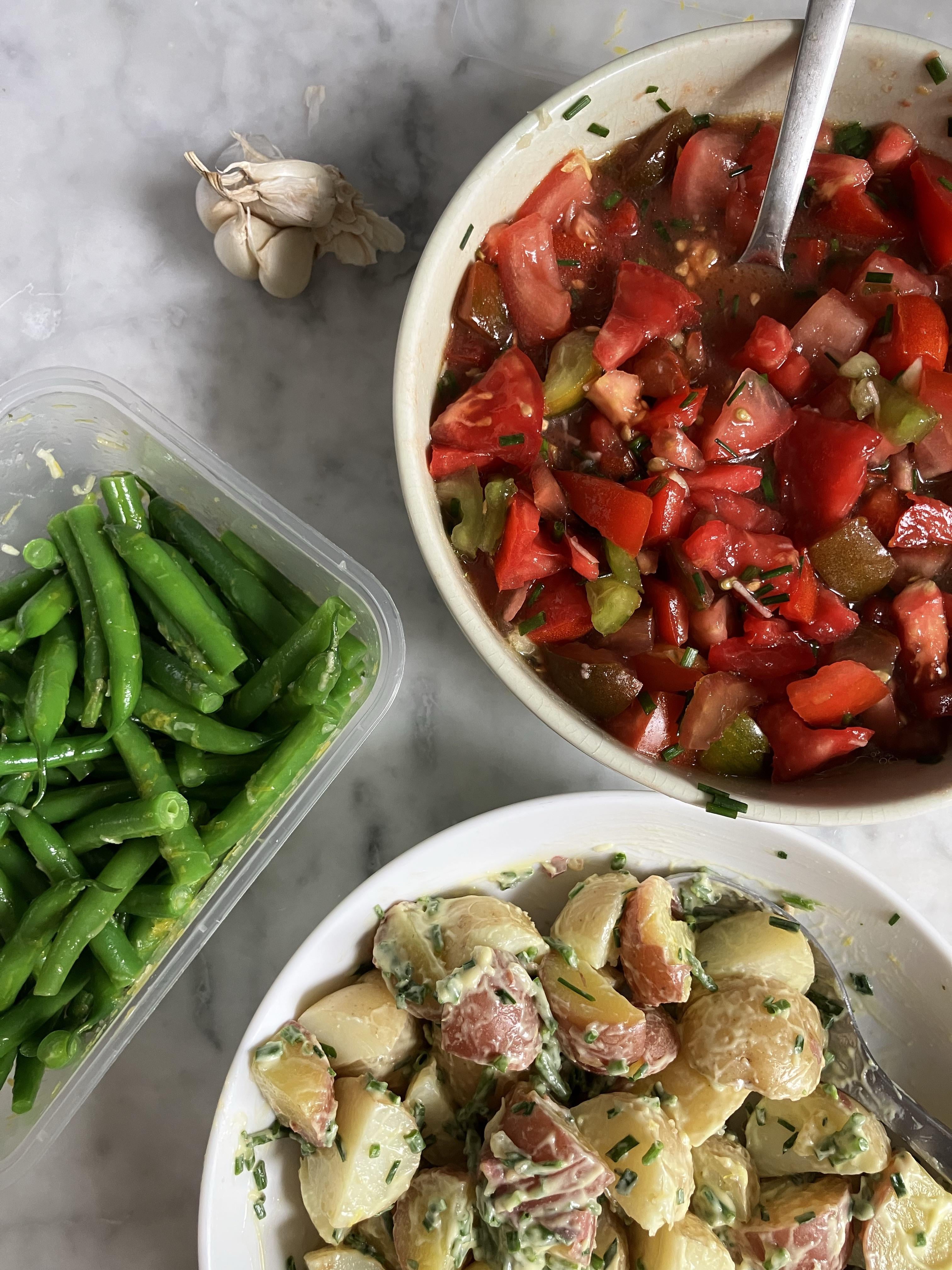 Sunchoke and potato salad with a chive and mayo dressing (mashed some of the sunchokes up into the dressing and the rest are crispy and cubed in there)