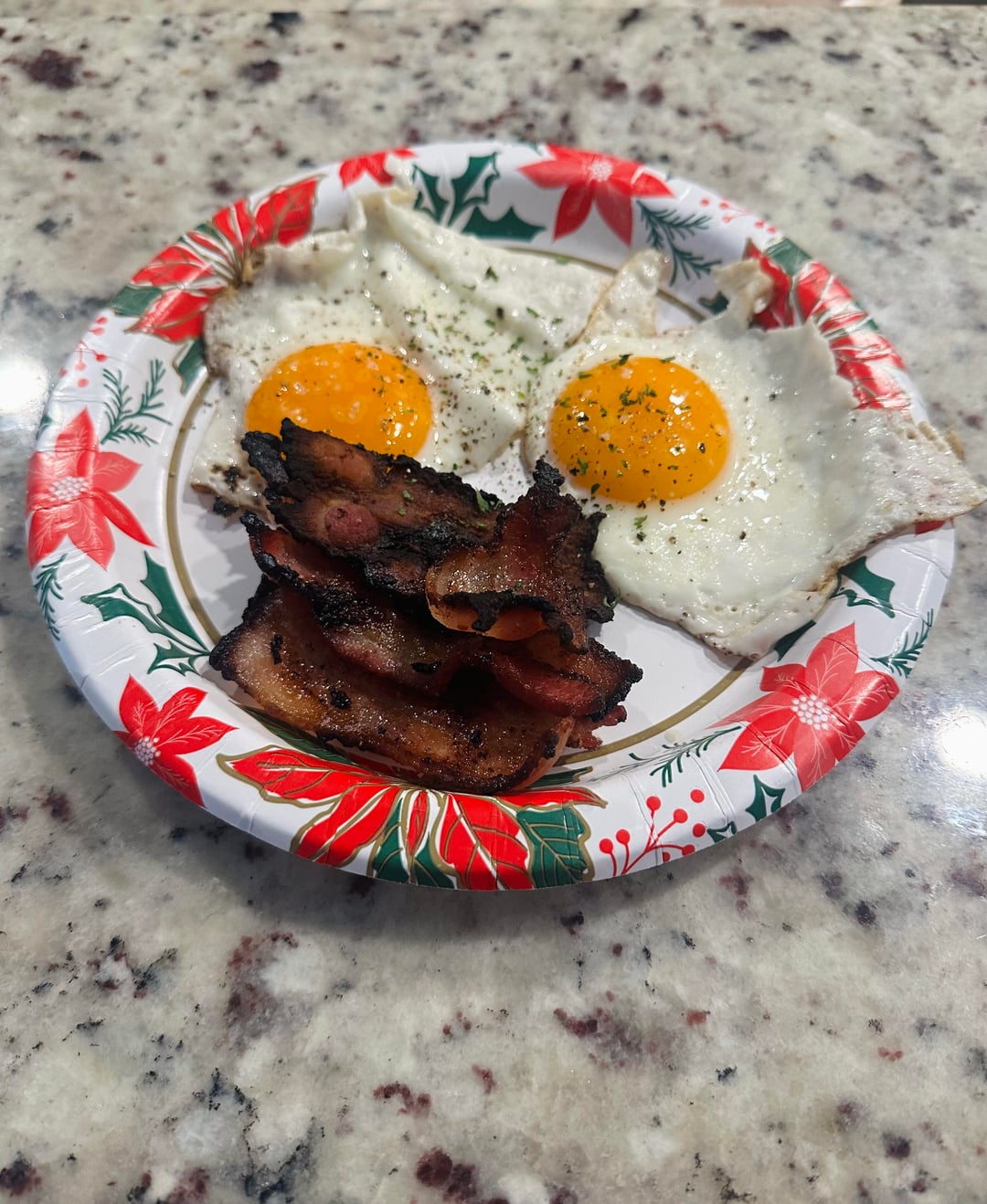 Final picture is just some bacon and fried eggs!! The yolks were so bright. Paper plate because I’m trying to keep the house clean before we travel. Tonight I’m making us bulgogi beef with white rice, and then I’ll be out of rice too.. dang. Alright everyone, have a great week 🧡❤️