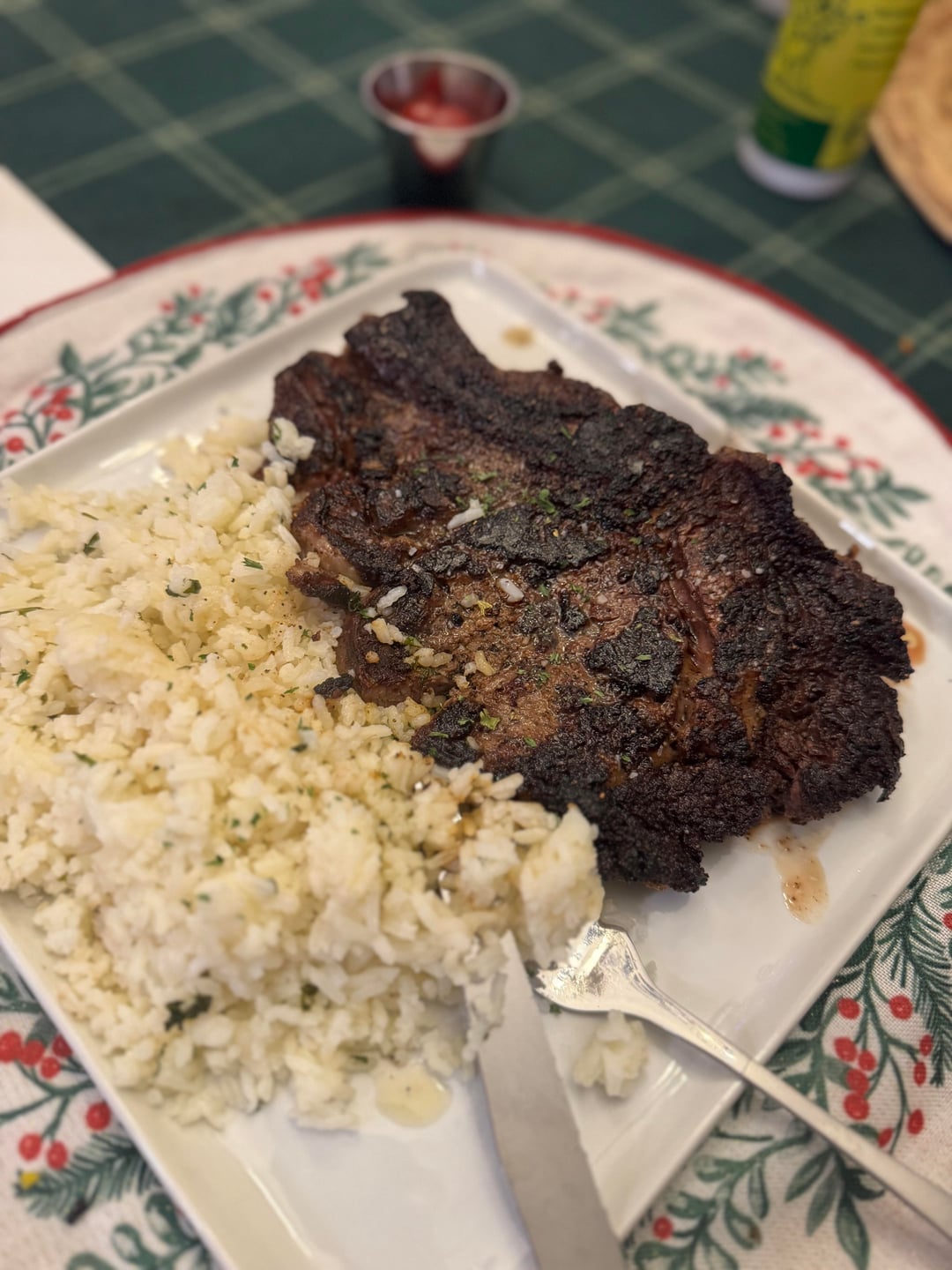 Fourth photo is a dinner I made just for my fiancé- that night I made myself baked buffalo cauliflower and broccoli (girl dinner) and he was not so enthusiastic.. so he got a ribeye cooked medium, his preference, with some cilantro lime rice. He said it was delicious. Forgot to get a picture of the buffalo cauliflower.