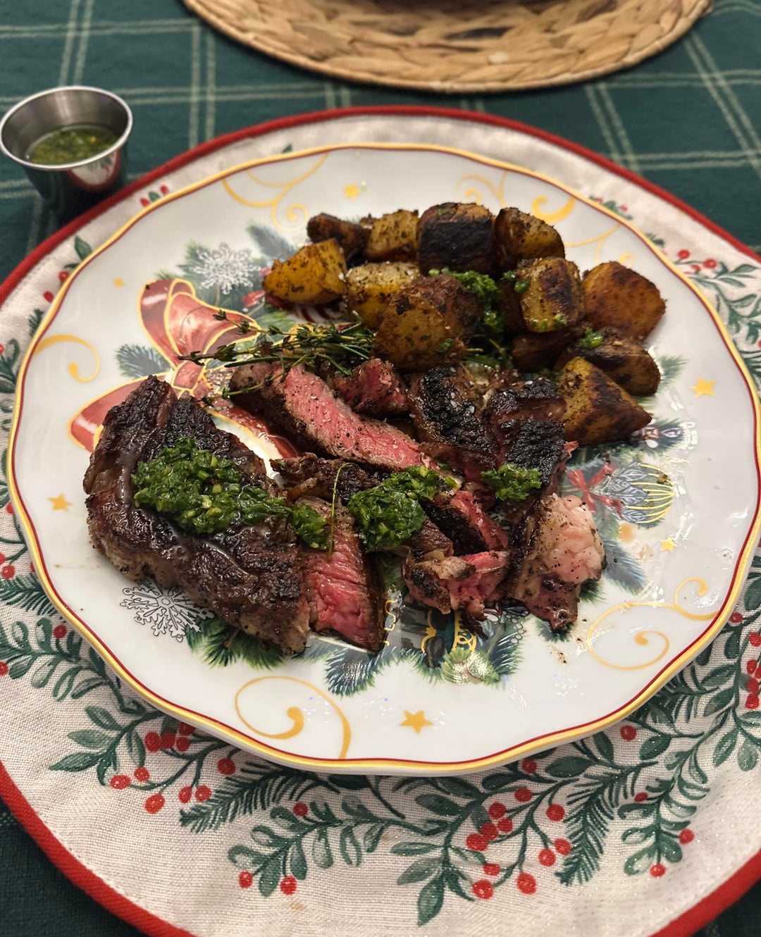 Sixth photo is another steak (oops) with chimichurri and pan-fried potatoes. 30 minute meal that’s good af.