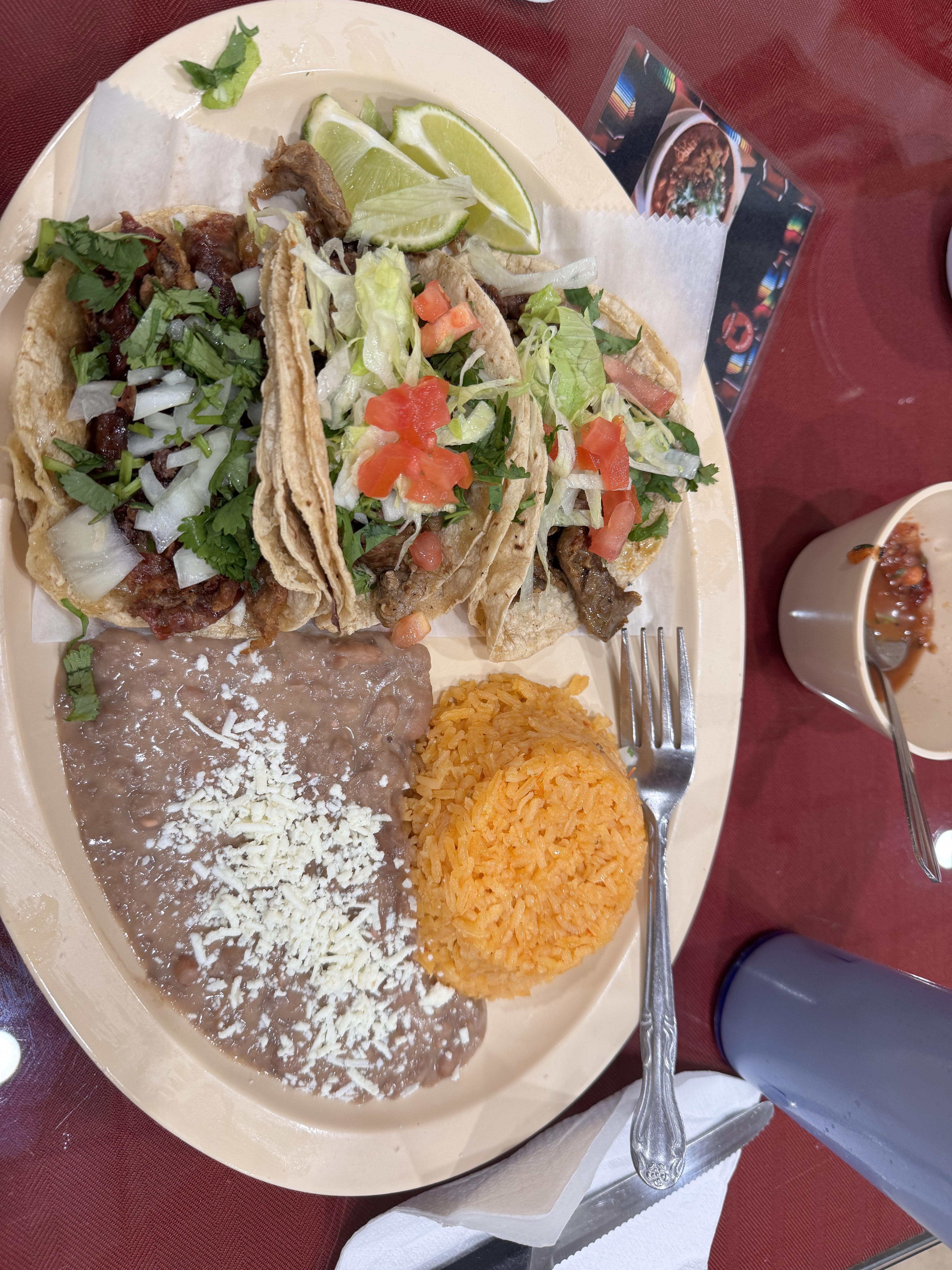 Dazzlingbabee4 on December 5, 2025 12:36 am ~**520–640 calories** total for 2 steak + 1 al pastor tacos.