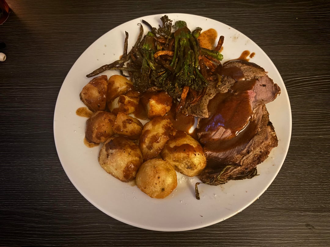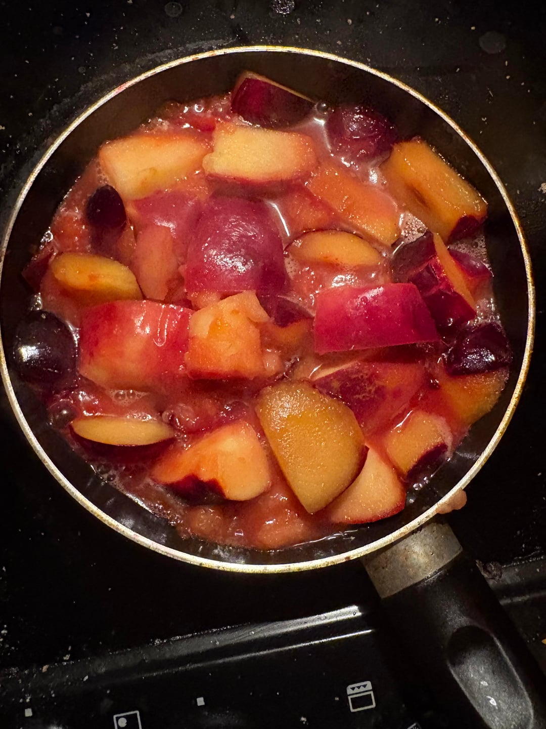 [homemade] Lamb and Potatoes and Apple and Plum Trifle