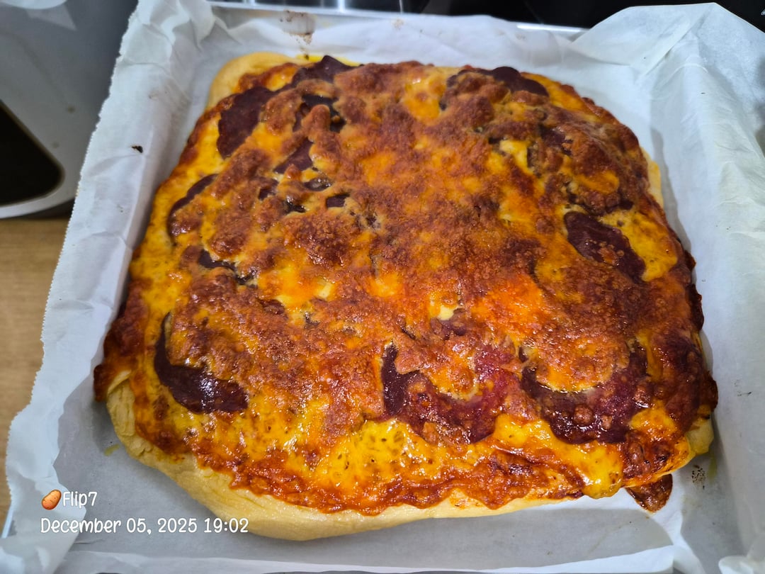 Handmade pizza with salami & sharp cheddar cheese toppings. Made it from stretch for the first time! by kartoffelteo9091 Dinner Tonight Tonight's Dinner