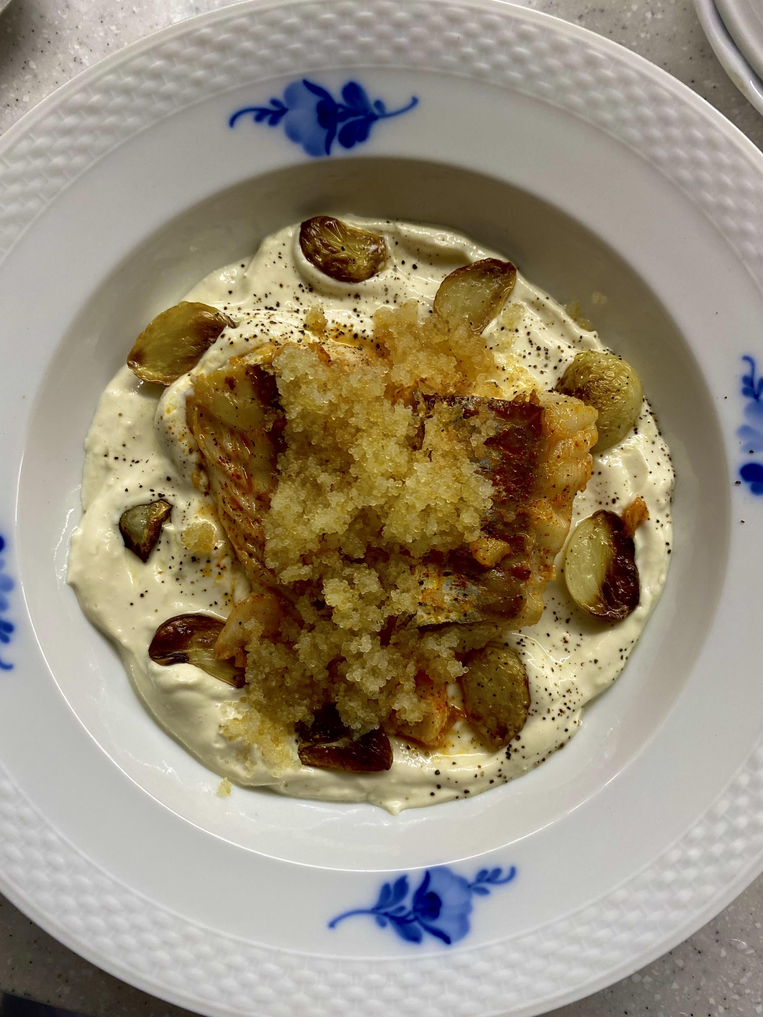 • Pan-fried cod seasoned with smoked paprika, onion powder, s&p