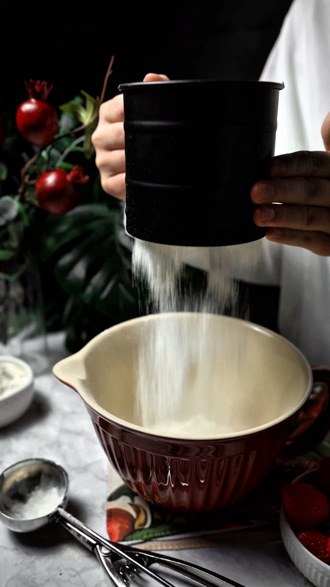 In a bowl, combine flour, cocoa powder, baking powder, baking soda, and salt.
