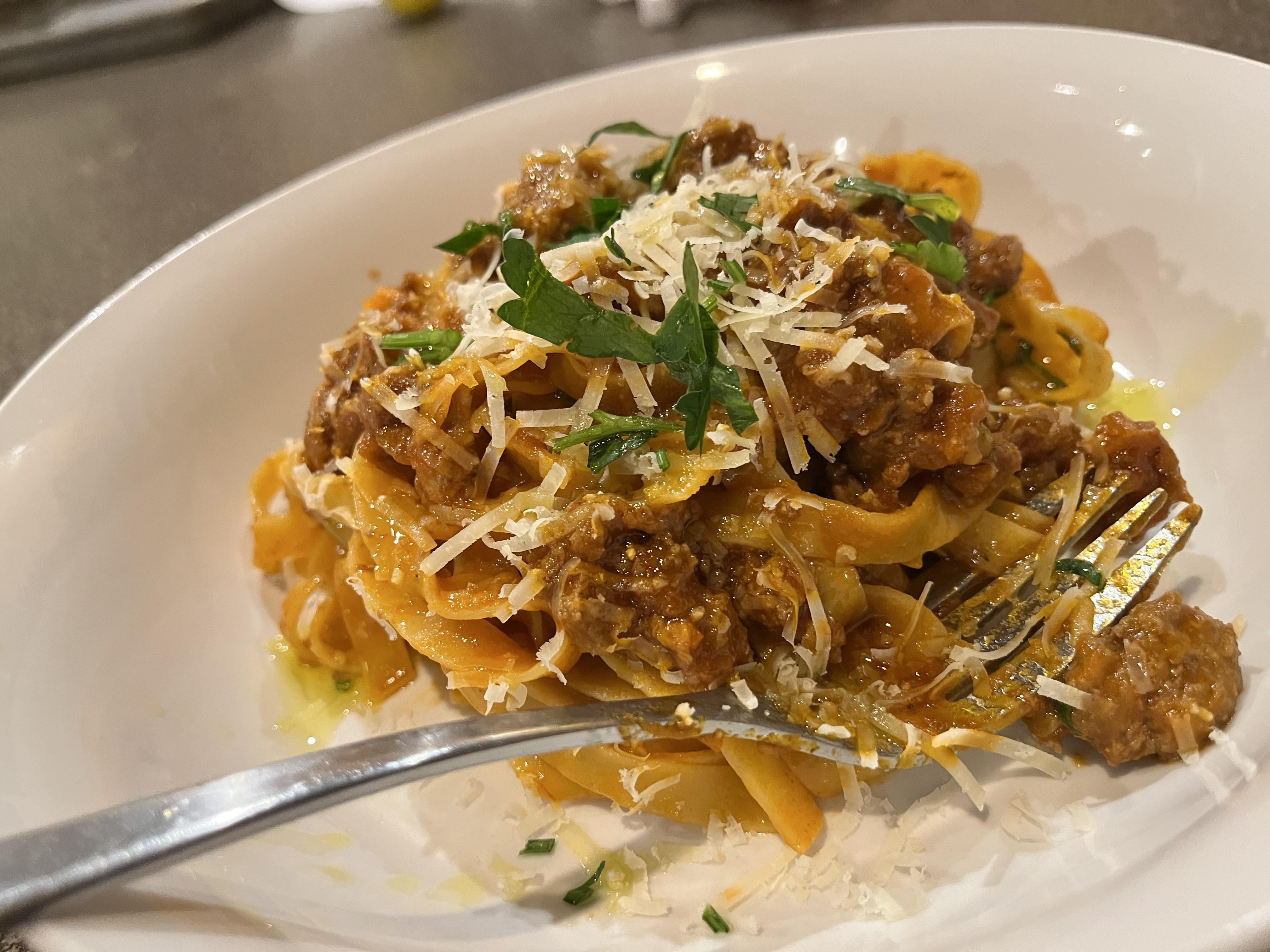 Dry aged beef ragu, 24 month parmigiano, egg fettuccine