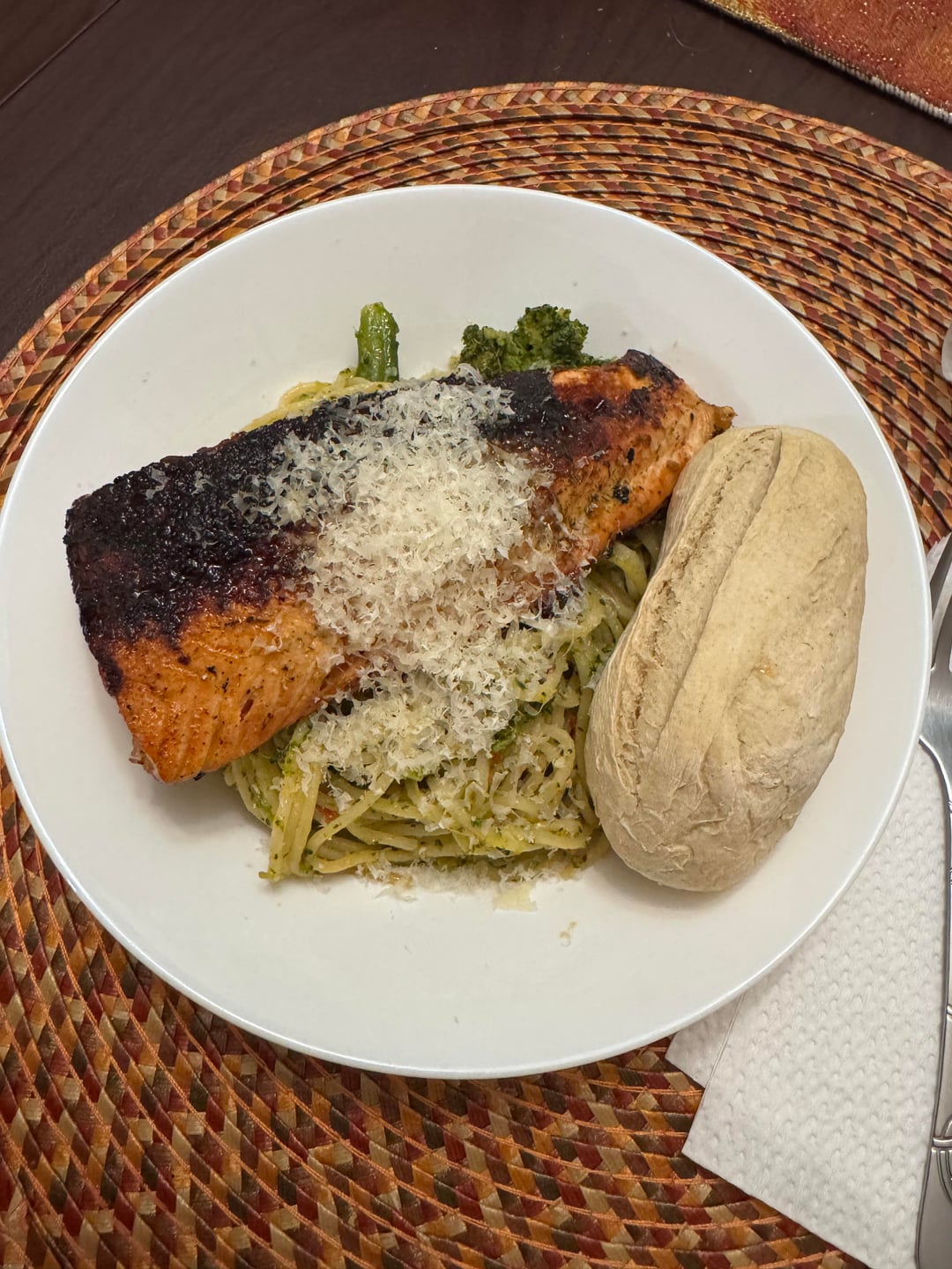 3- Blackened Salmon with Broccoli Alfredo & Baguette