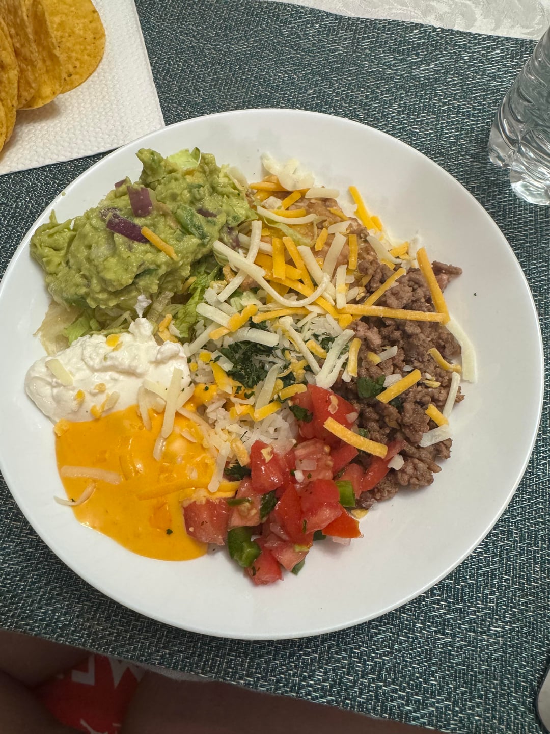 4- Taco Bowl (Guac, Queso, Pico, Cheese, Refried Beans, Beef, & Rice)
