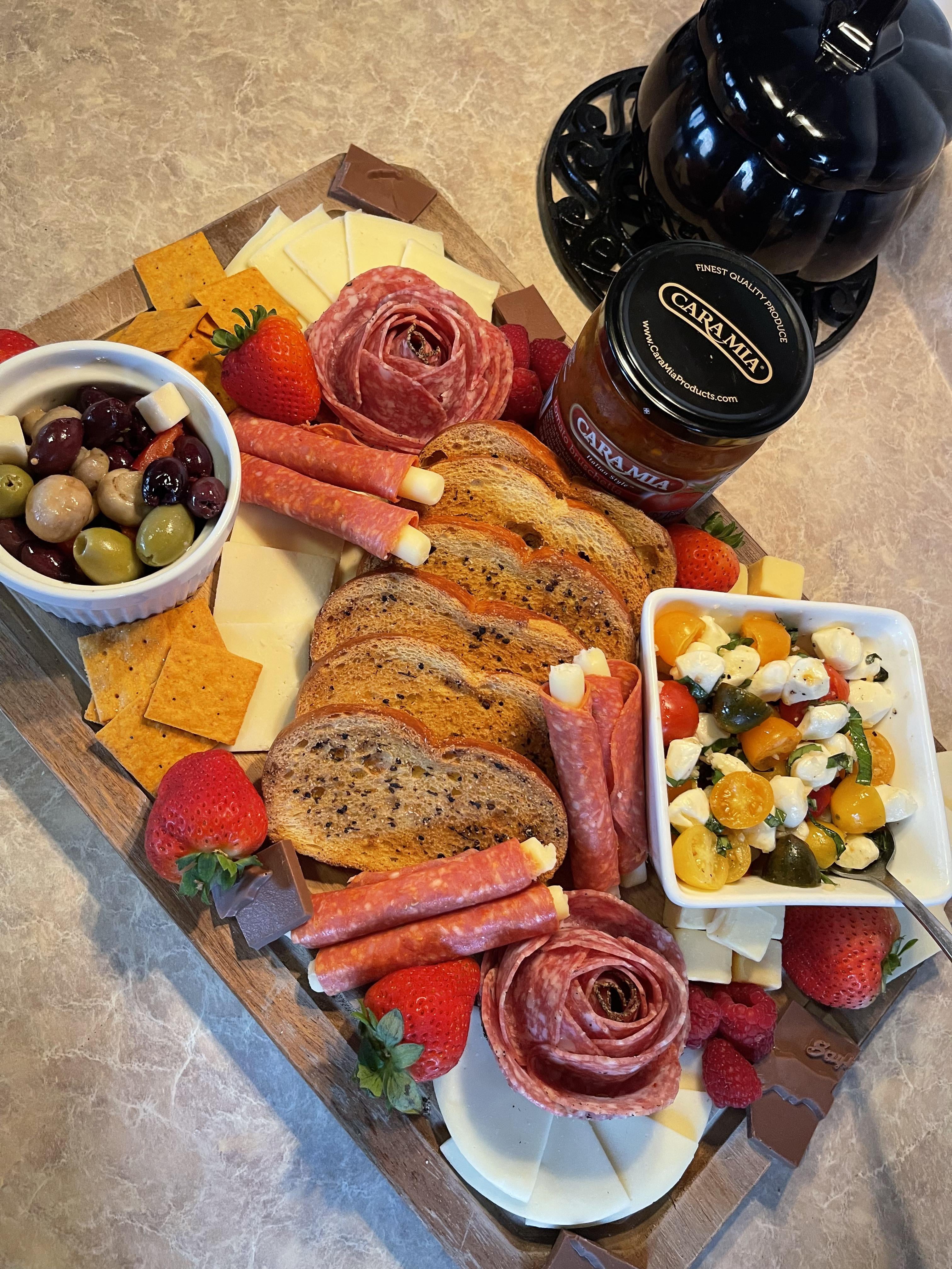 1. Yeah, I’d crush that. Salami roses are lovely and I’d eat that ramekin of olives and mushrooms with a spoon.