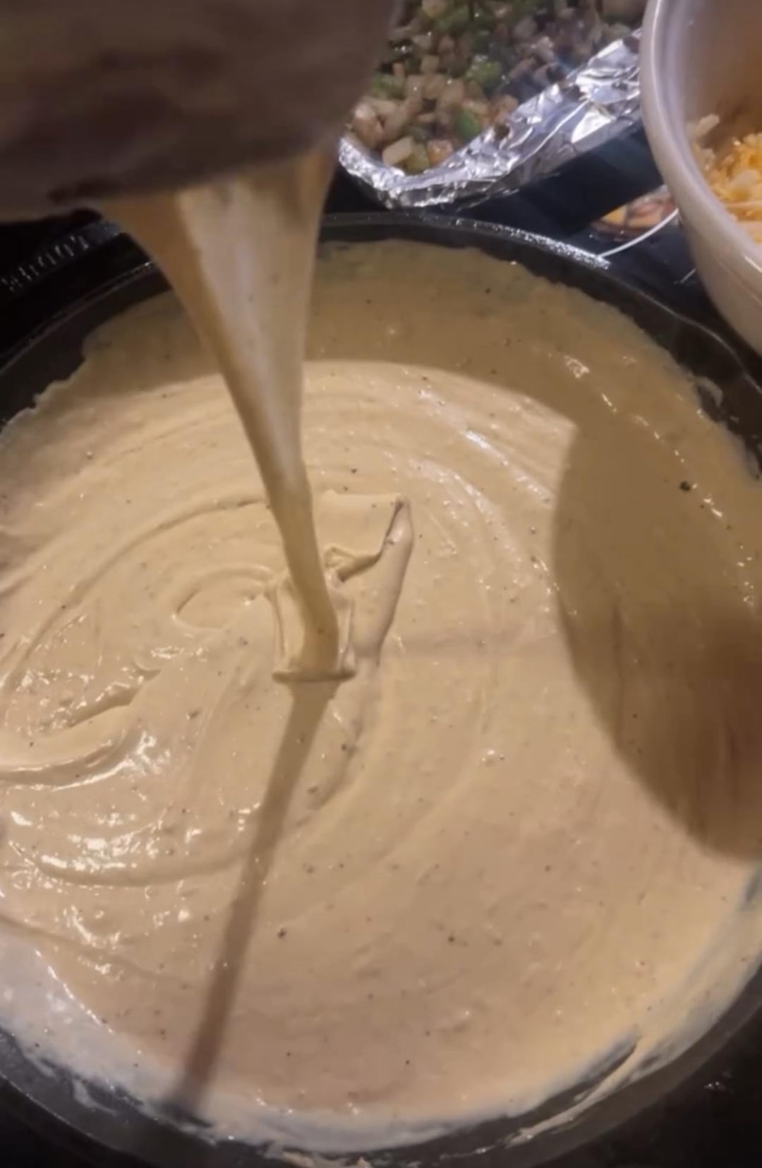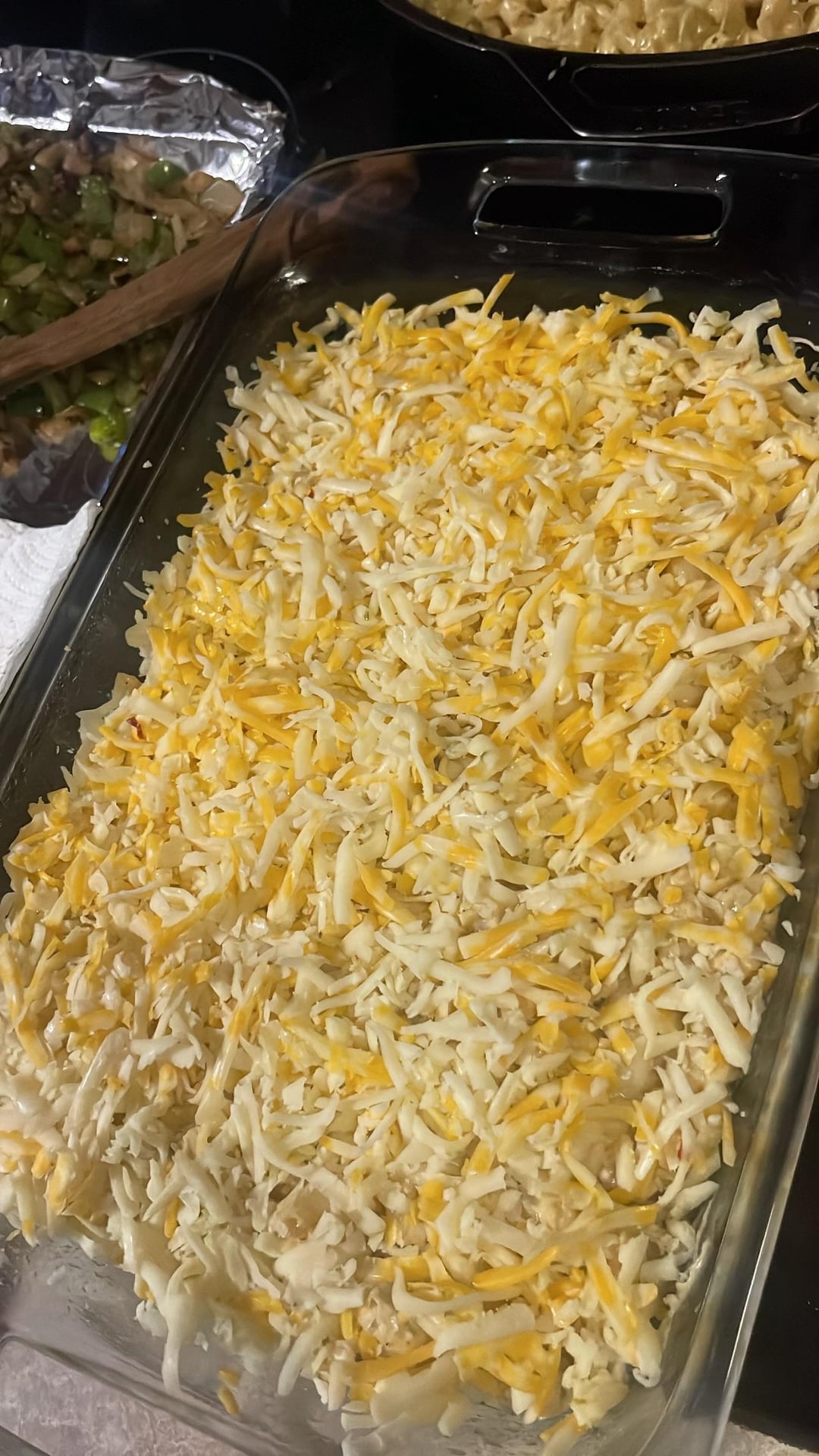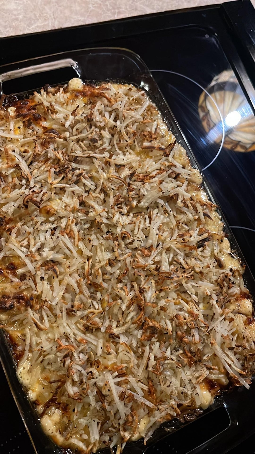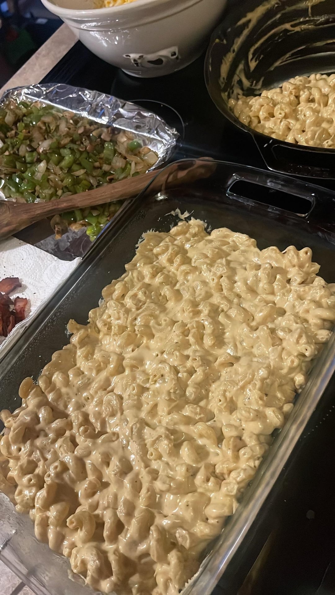 This is a copycat recipe from a place called Mac’s in Wisconsin. They serve your chosen Mac in a personal sized cast iron. I’ve done it in my largest cast iron before but this batch was larger and I’ve found that it comes out drier when using cast iron. My pan is well seasoned, don’t come for old girl. It’s the residual heat that dries it out.
