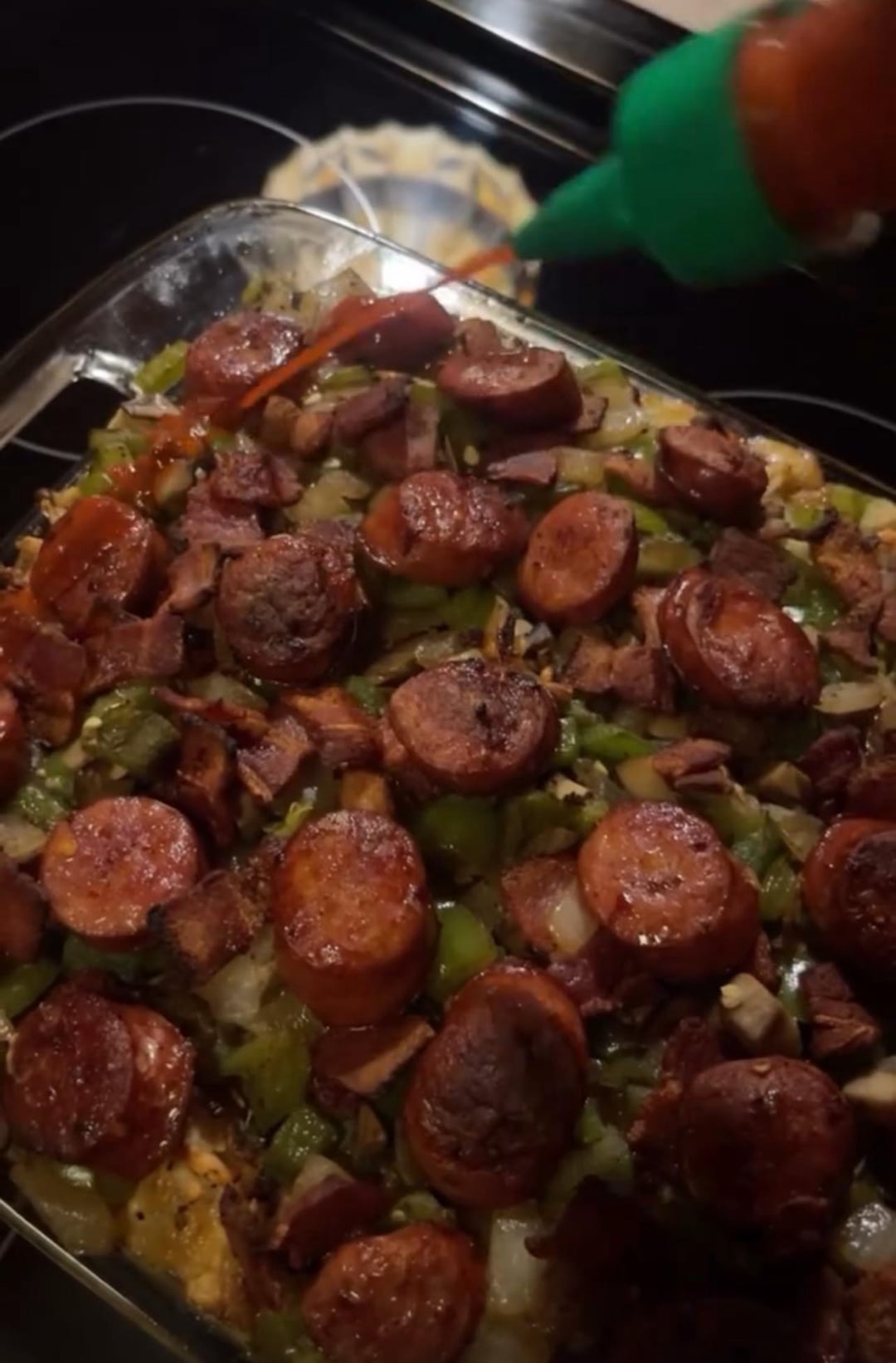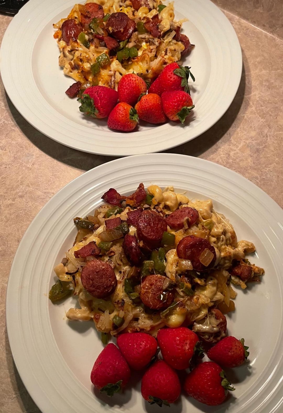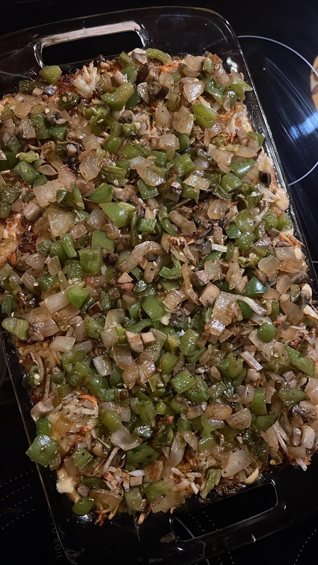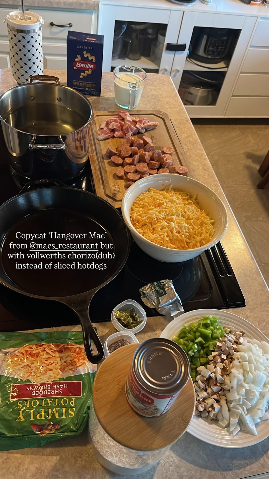 This is a copycat recipe from a place called Mac’s in Wisconsin. They serve your chosen Mac in a personal sized cast iron. I’ve done it in my largest cast iron before but this batch was larger and I’ve found that it comes out drier when using cast iron. My pan is well seasoned, don’t come for old girl. It’s the residual heat that dries it out.