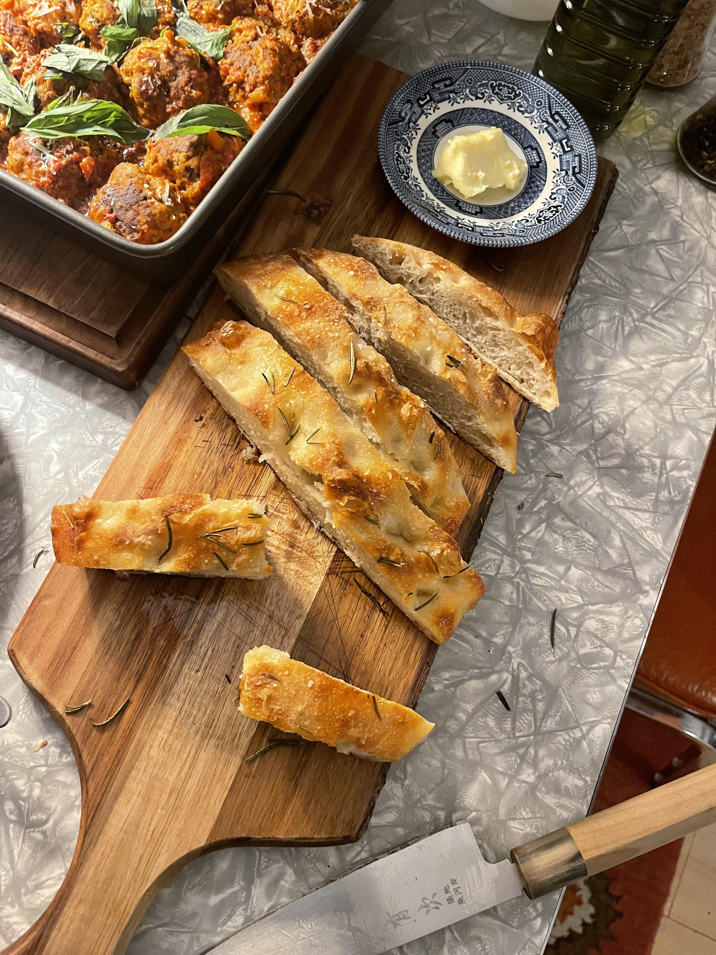Home made triple mix meatballs and focaccia