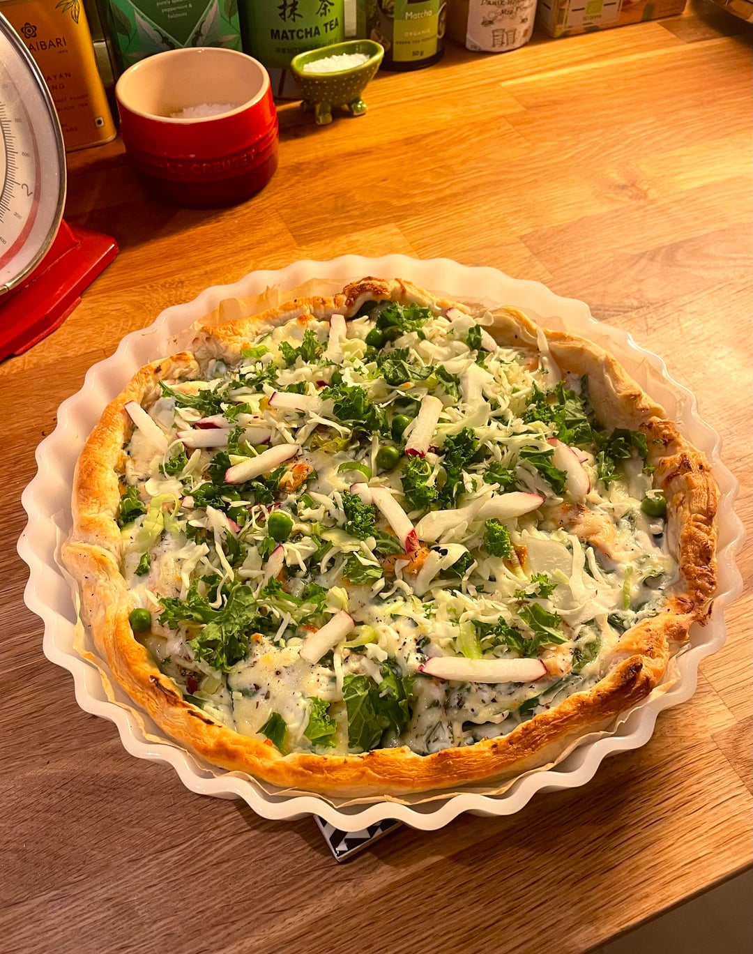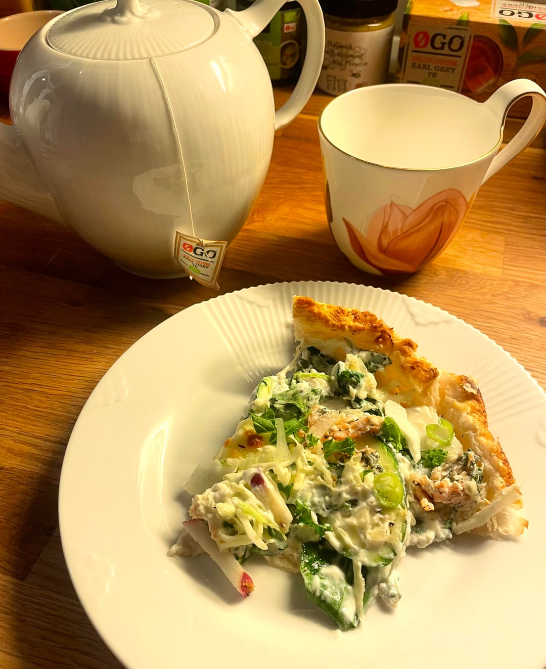 I am not made for heavy December foods. Was craving something fresh and green and dumped all the vegetables I had into a pie form with my favourite fresh gravlax. It turned out a little messy but very good. I mixed the ricotta filling with garlic, olive oil and lemon juice for extra zest 🍋