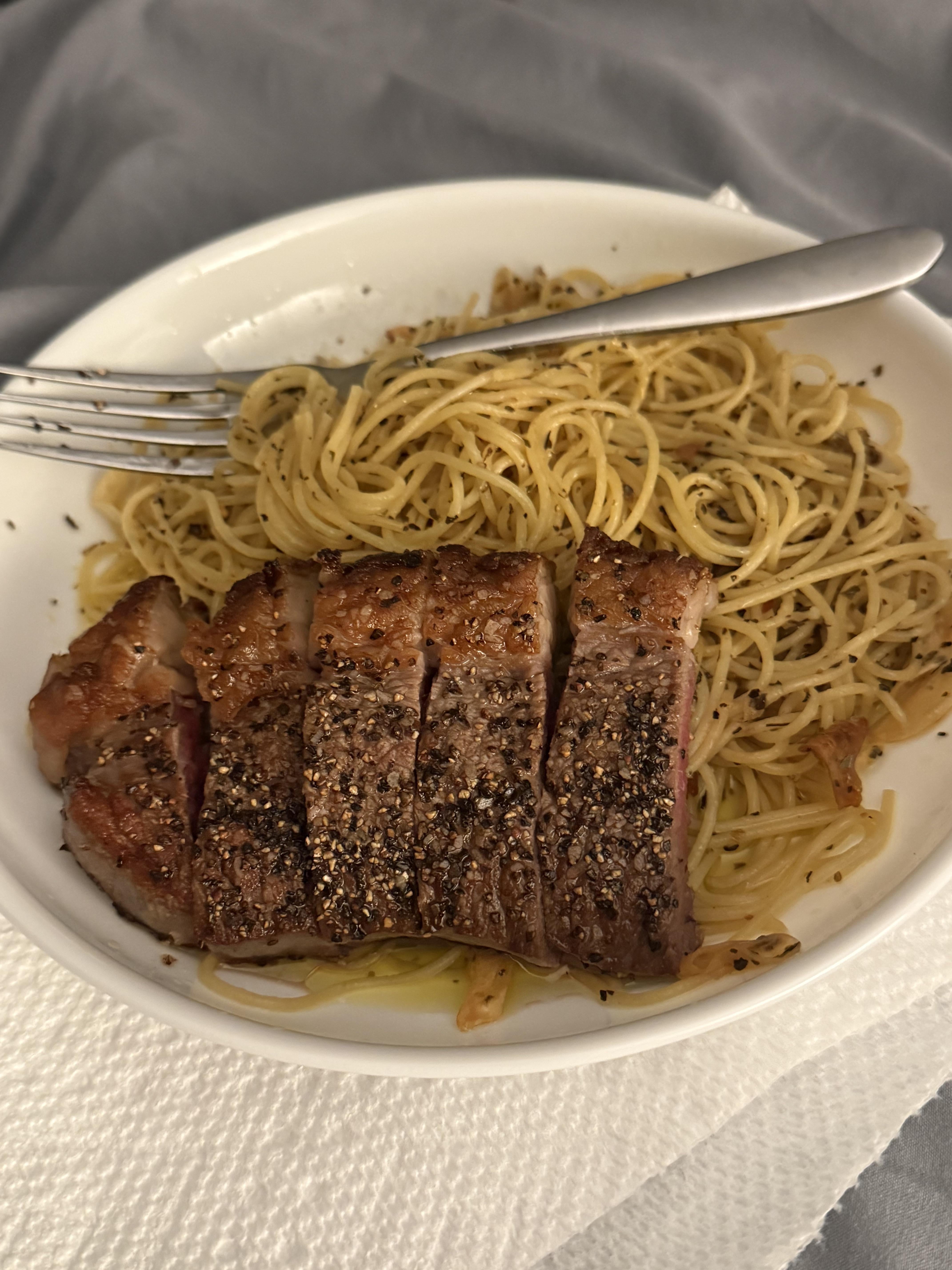 [homemade] I made Picanha steak and Agalio E Olio pasta