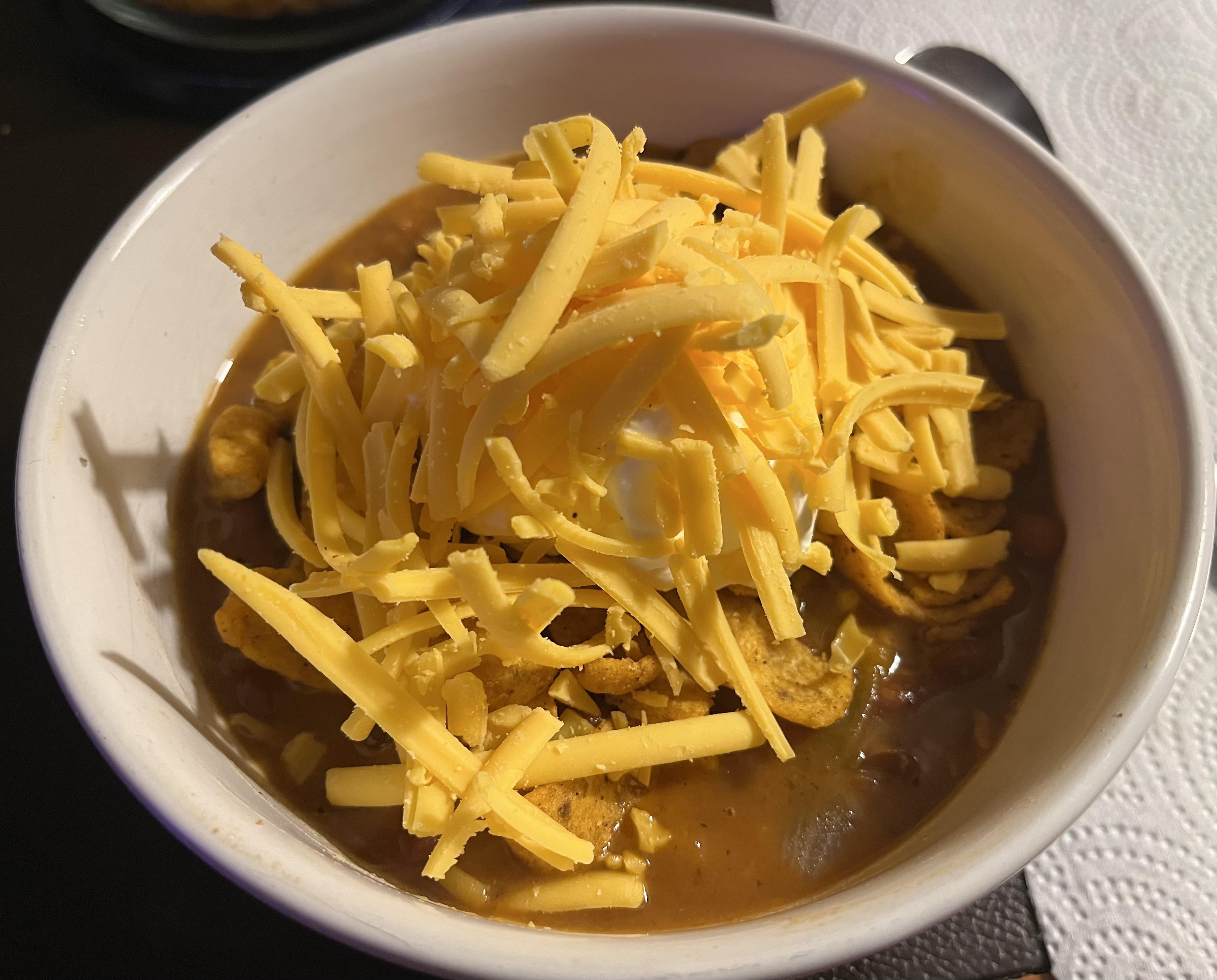 My spouse is the official chili maker in the house! Their chili is so delicious and I look forward to the winter times specifically because it’s soup season. They do a special little twist on theirs and add sweet potatoes and it’s so damn good! I love to add a bunch of Fritos, sour cream, and cheese on top!