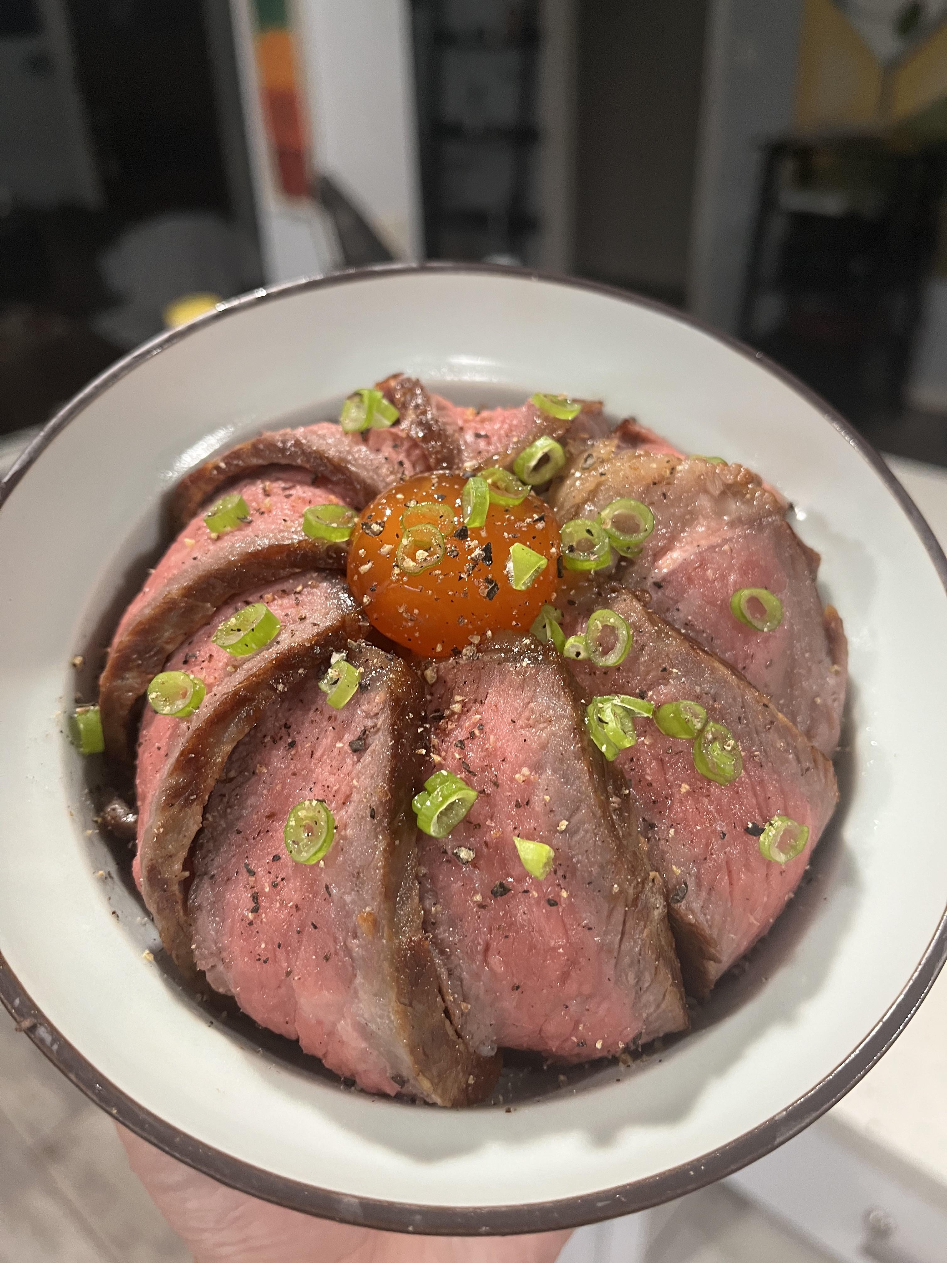 First time posting on this sub! This was my second attempt since the egg exploded on the first attempt. I had leftovers so I figured I’d try again. Enjoy!