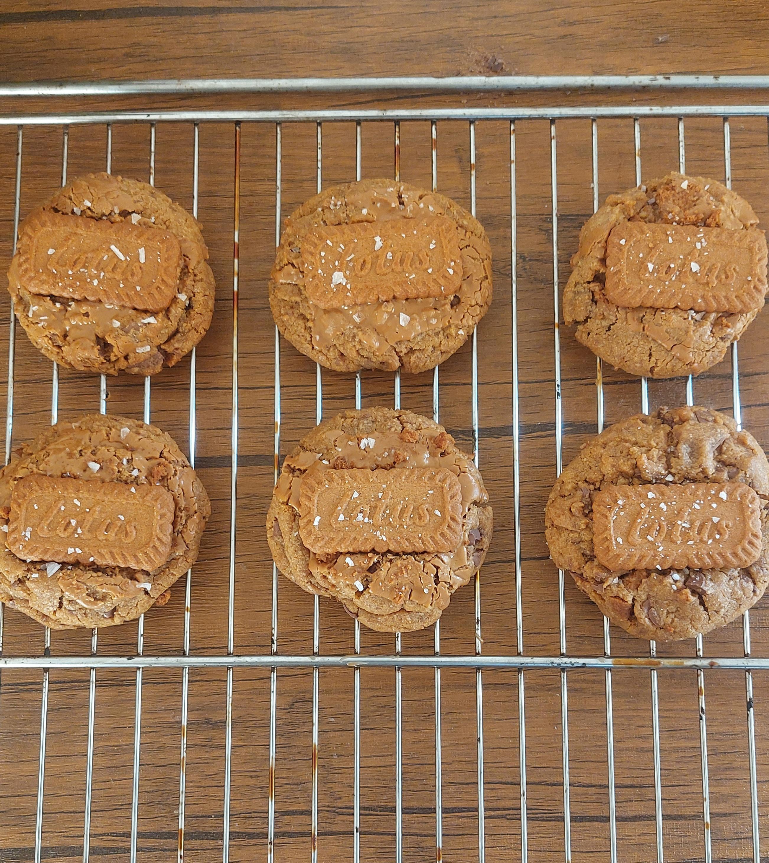 [Homemade] Biscoff chocolate chunk cookies topped with flaky sea salt