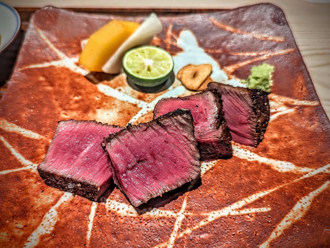 An enjoyable meal with some very good beef dishes, the hefty price tag (49500 yen for the dinner tasting through Omakase) and lack of real excitement (it's beef cooked very well, is the bottom line) makes it the least likely that I will return to, of the restaurants that I visited during this trip.