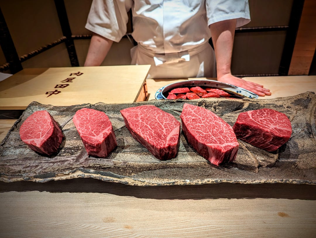 The final fine dining booking I made for my recent Tokyo trip (other restaurant reviews, as well as a summary that incorporates a host of more casual spots, are on my profile), I hadn't initially planned on visiting Nikuya Tanaka Ginza, but felt compelled to book after eating the most exquisite beef at Ginza Kitagawa. Given that Nikuya Tanaka specializes in beef – with the beef on offer the night I dined being Specialty Matsusaka beef, bred for 52 months, from breeder Kazuto Hamaguchi – I was optimistic that I would try beef as good as that from Ginza Kitagawa. While that wasn't quite the case, my visit to Nikuya Tanaka Ginza was still enjoyable, with excellent service, a friendly atmosphere, and some very fine beef dishes.