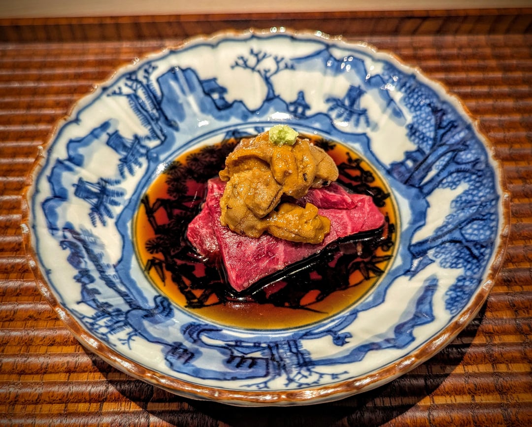 The Ginza outpost of a beef empire, Satoru Tanaka (a third-generation bovine specialist) opened the restaurant in 2019, three years after the flagship, Nikuya Setsugekka in Nagoya, opened its doors. Since then, Tanaka-san has gone on to open restaurants up and down the country, as well as in other countries in Asia. And while beef is of course the star (this is wagyu kappo cuisine, after all), there are other fine ingredients to be had here, such as snow crab, uni, caviar and matsutake mushrooms.