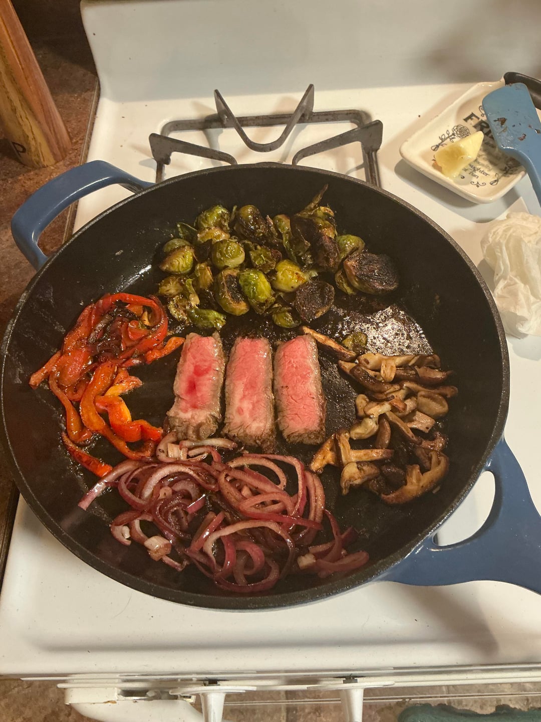 If you’ve never used Caesar dressing as a topping for steak, highly recommend. Happy to share the cookie recipe, if anyone wants it.