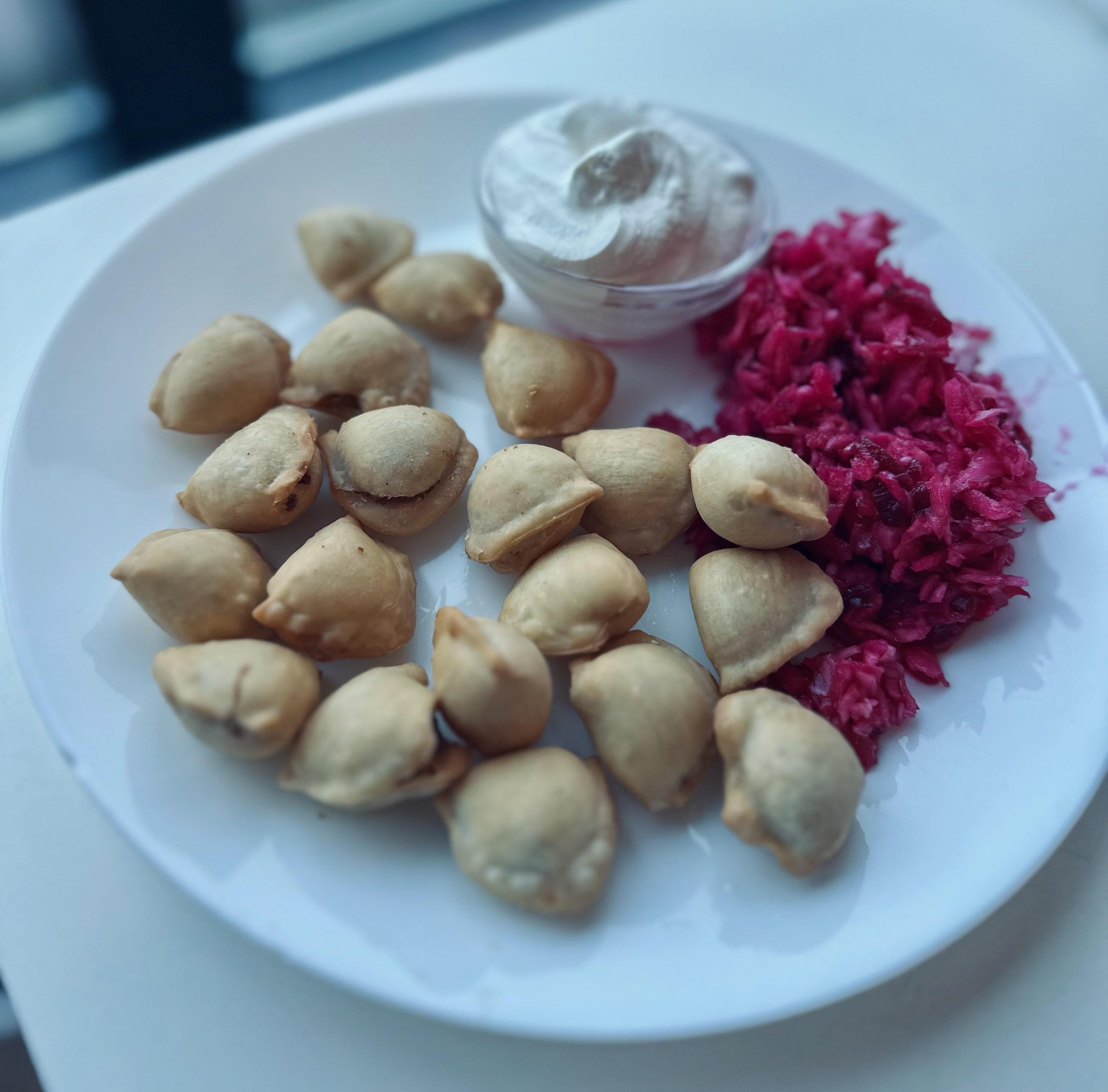 [I ate] Just some deep fried pelmeni, salad and sour cream