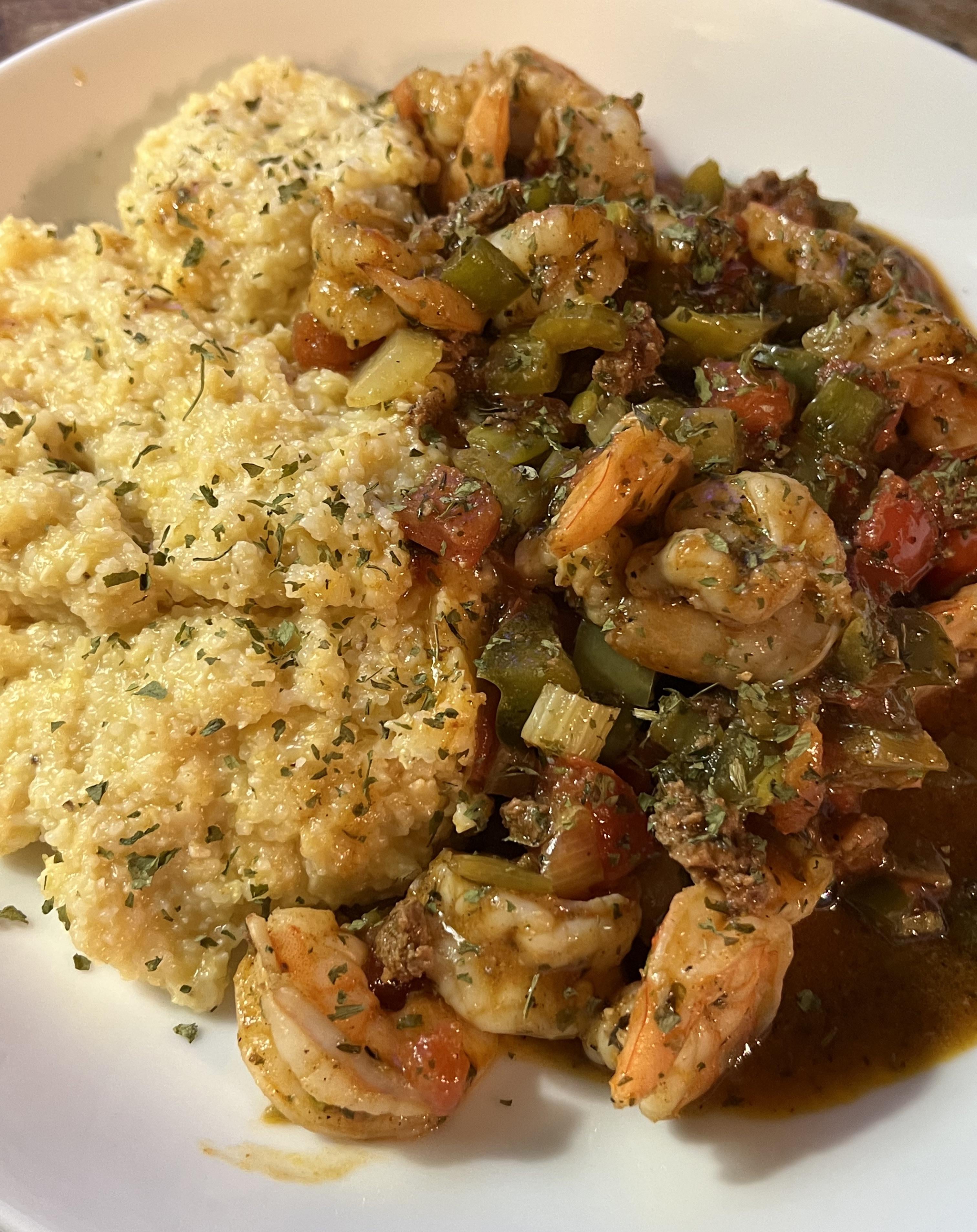 [homemade] Shrimp and Smoky Cheddar Grits