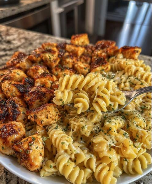 [homemade] Cheesy Cajun Chicken Rotini in Garlic Parmesan Sauce