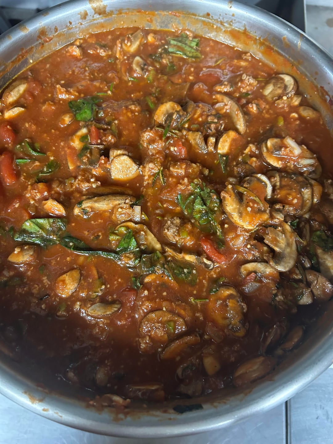 I was in the other room smelling something good and came over to a roasted chicken stew with mushrooms, tomatoes and more