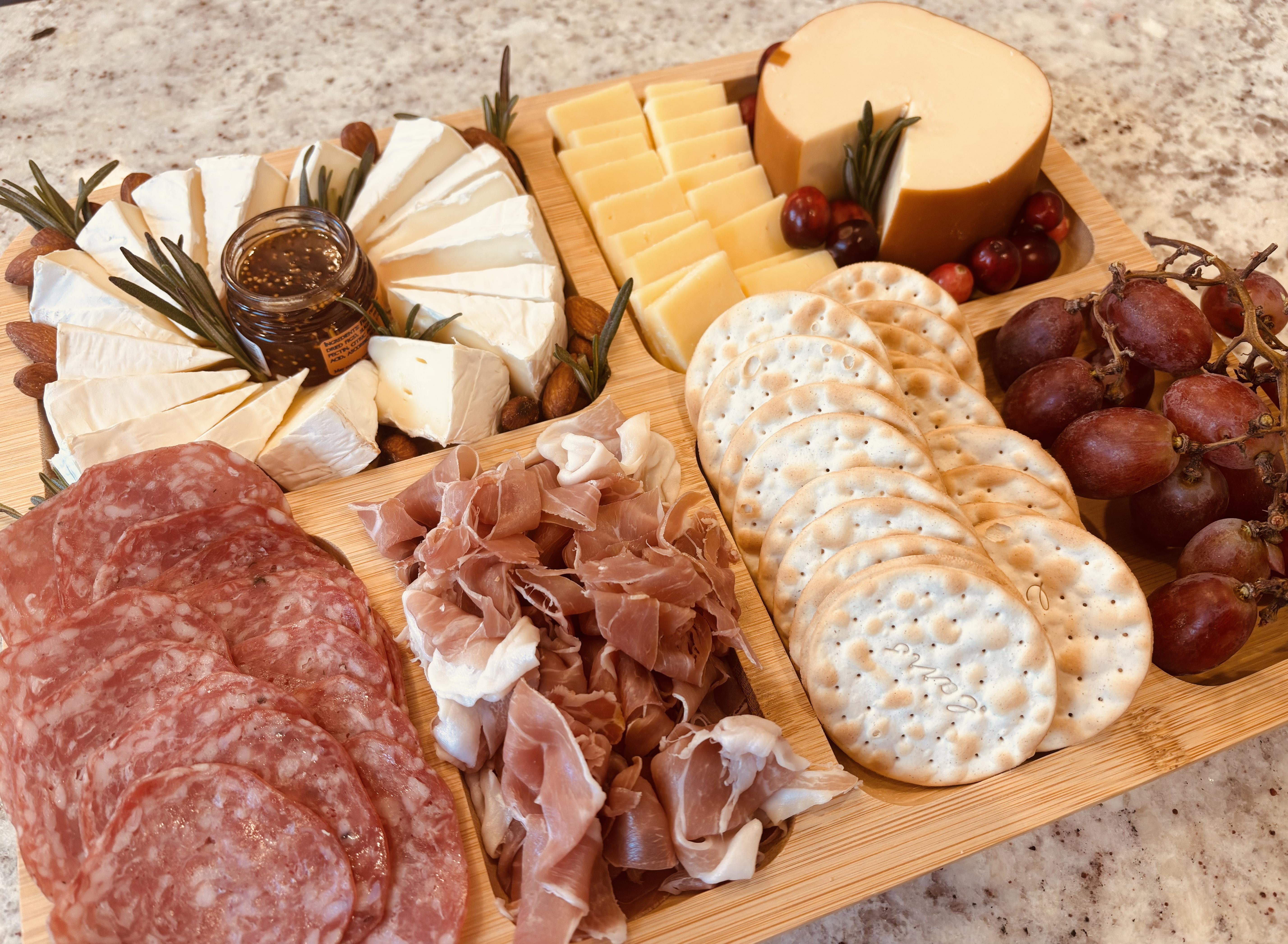 Pictured: Brie, sharp cheddar, smoked Gouda, soppressata, prosciutto, carrs crackers, grapes, cranberries, almonds, fig spread, rosemary by GrandMoffmanTarkin Food Porn