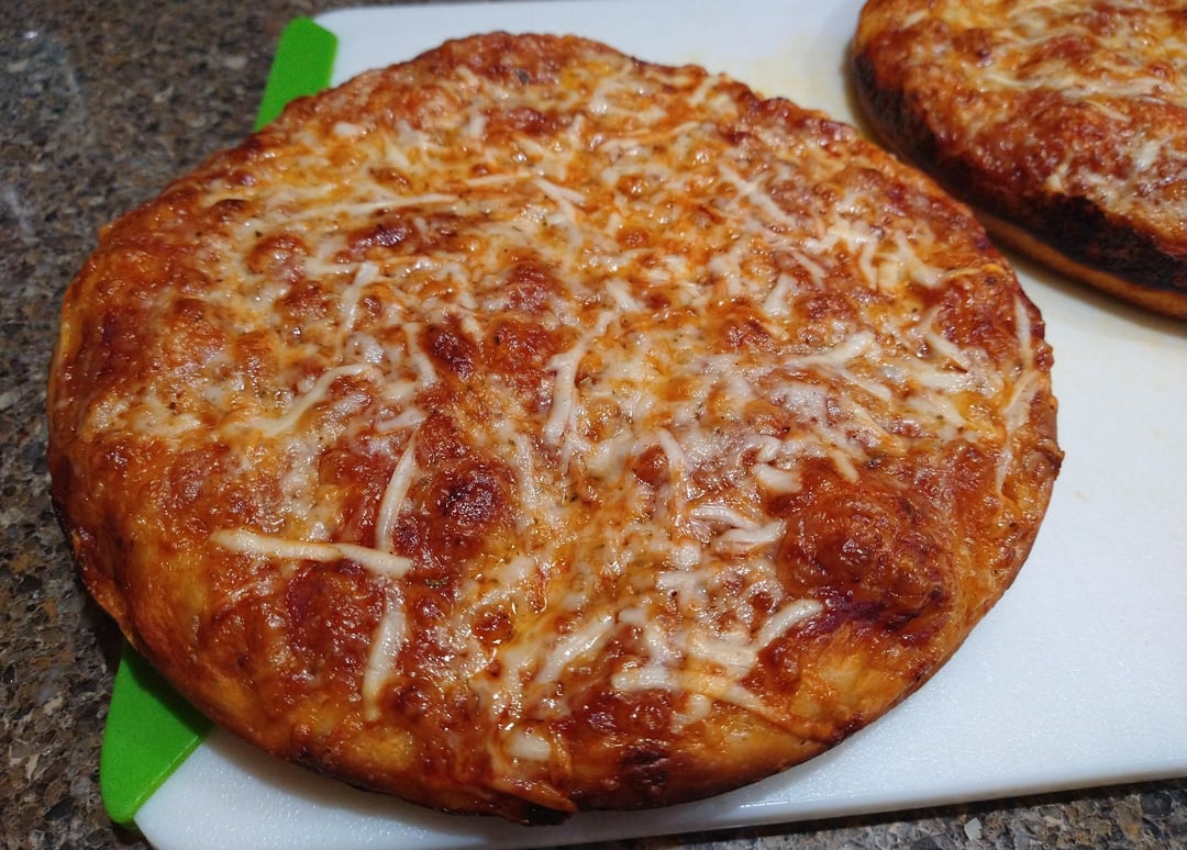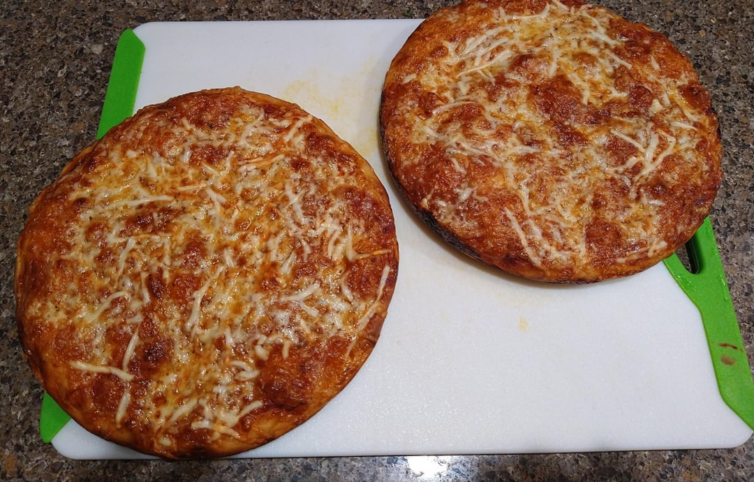 Homemade cheese pan pizza. I made the dough two days ago and let it age in the fridge. Came out really good! by Brisbykins Dinner Tonight Tonight's Dinner